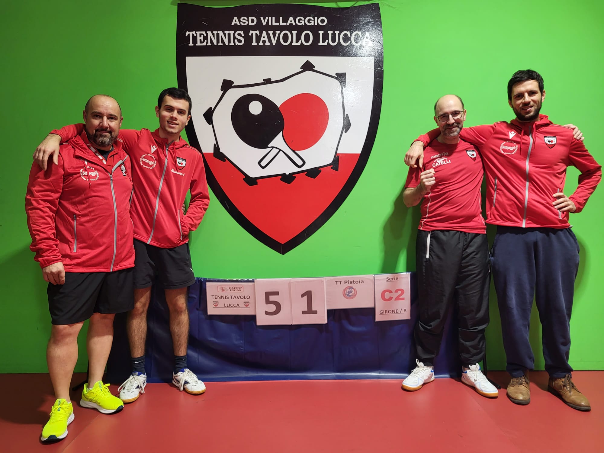 Nelle due serie nazionali, continua il successo per la serie C1, che conclude il girone d’andata con un en plein di vittorie: contro gli avversari del Ciatt Prato A i ragazzi rossoneri Cerquiglini (3), Gherardi (1) e Madrigali (1) si sono infatti imposti per 5-2, mantenendo così ben saldo il primato in classifica. Si interrompe invece la scia positiva per la serie B1, a cui non basta la tripletta di Morato; in casa del TT Reggio Emilia Lucca cede 3-5.