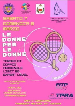 La gara, che vede già iscritte molte atlete della Toscana, vedrà scendere in campo le tenniste che si confronteranno nel doppio Lim 60/expert level, con una prima fase a gironi, mentre la seconda fase sarà ad eliminazione.