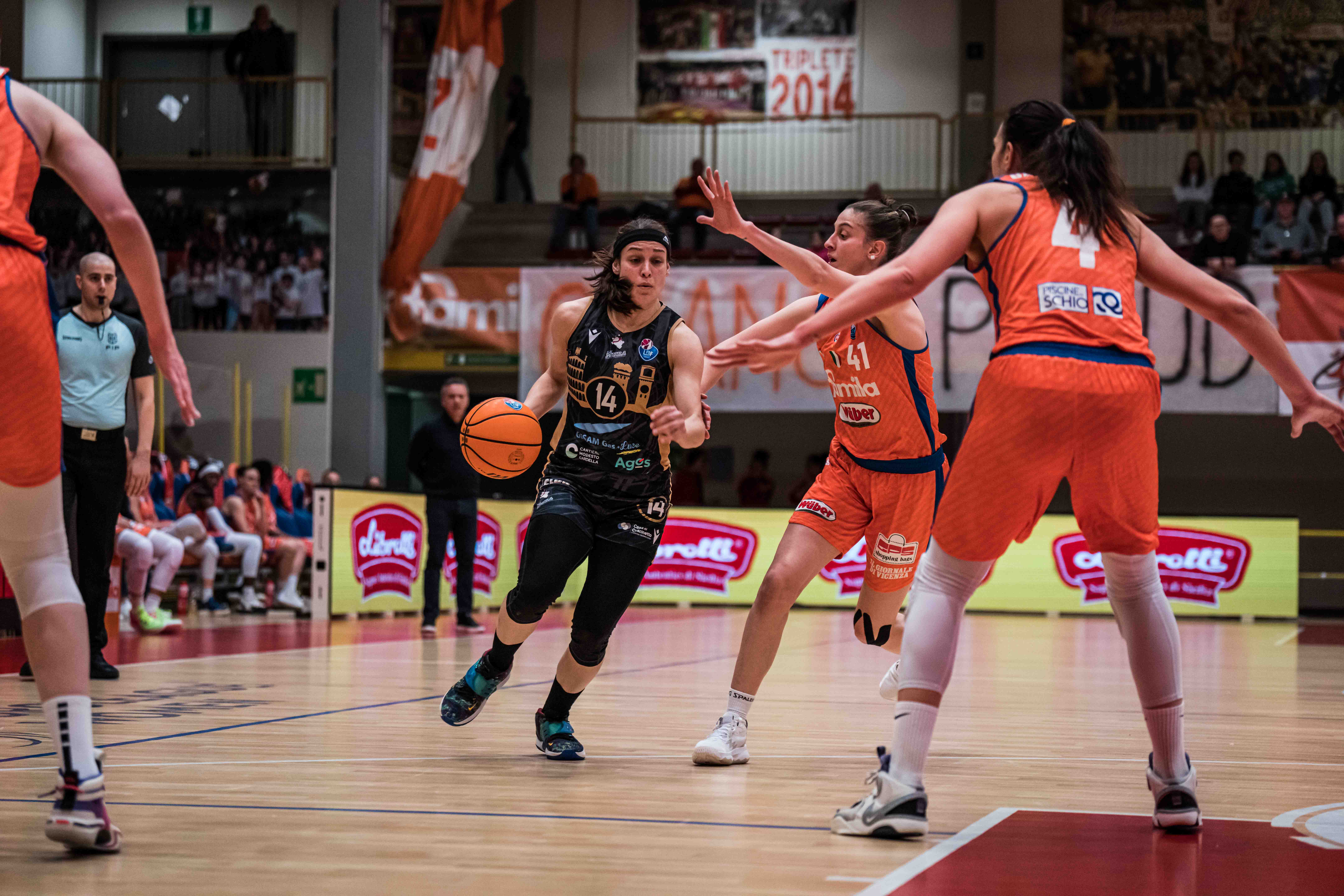 Il Basket Le Mura Le Mura Lucca chiude il suo trittico di impegni settimanali cadendo nettamente in casa della capolista Famila Wuber Schio. Il 109-51 finale racconta di una partita mai in discussione: troppo superiori le orange, non a caso ancora in corsa su tre fronti, per le ospiti, costrette ad accorciare ulteriormente le rotazioni per l’assenza di Treffers e per gestire il minutaggio delle acciaccate Miccoli e Morrison. Desta preoccupazione, inoltre, l’infortunio a un dito, molto simile a quello occorso al capitano biancorosso un mese fa, subito da Sofia Frustaci. Da capire se la playmaker lombarda riuscirà a recuperare in tempo per il delicato impegno interno di mercoledì 8 marzo, palla a due alle 20.30, contro l’Akronos Moncalieri. Il tentativo di restare il più possibile a contatto Schio è durato solo il quarto iniziale. In casa scledensi, al di là delle alte percentuali al tiro, da sottolineare le quattro cestiste andate in doppia cifra (Verona, Howard, Mestdagh e Ndour).