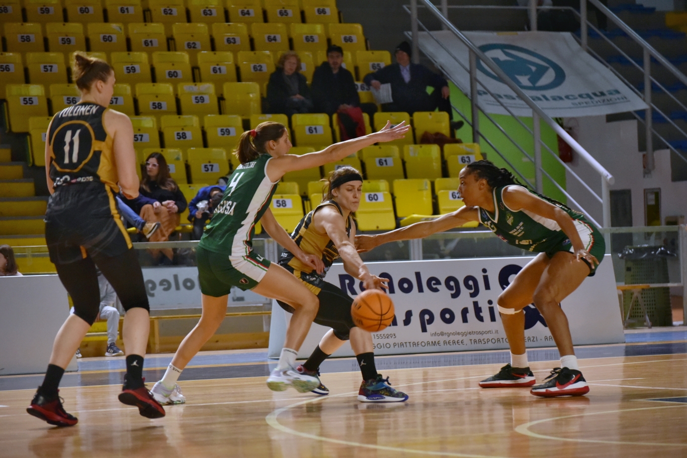 Nel terzo quarto lo spartito rimane il medesimo: locali aggrappata alle giocate delle proprie stelle, la squadra di Andreoli lotta con intensità su ogni pallone e tira alla grande dalla tre. Una nuova “bomba” di Frustaci vale il 38-51, con Tulonen, Miccoli e Morrison capaci di trovare a loro volta la via del canestro. Gli unici tre punti della serata di Giulia Natali proiettano Lucca sul 38-59. L’ex Francesca Dotto si iscrive a referto dall’arco, Vitola si muove bene con i tagli sotto canestro ma le biancorosse, sospinte dalla compattezza del gruppo, continuano a menare le danze. Tra progressioni e triple Sara Bocchetti dà sfoggio di tutto il proprio repertorio.