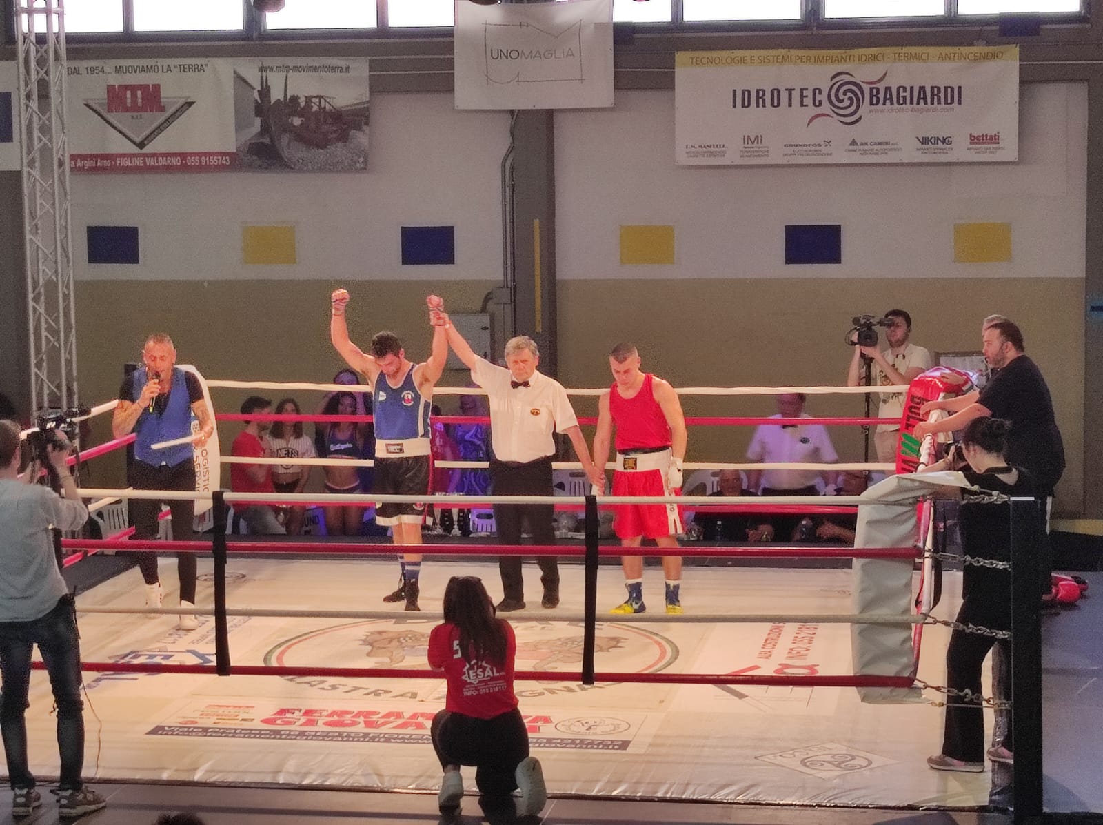Il week-end pugilistico è iniziato sabato 6 maggio con l'incontro di Lorenzo Frugoli, élite 81kg, impegnato sul ring di Figline Valdarno contro Ivan Gimmi (ASD Quero-Chiloiro). Match molto duro per Frugoli, che si è però aggiudicato la vittoria, iniziando così con il piede giusto il percorso che a settembre lo porterà ai campionati italiani under 22.