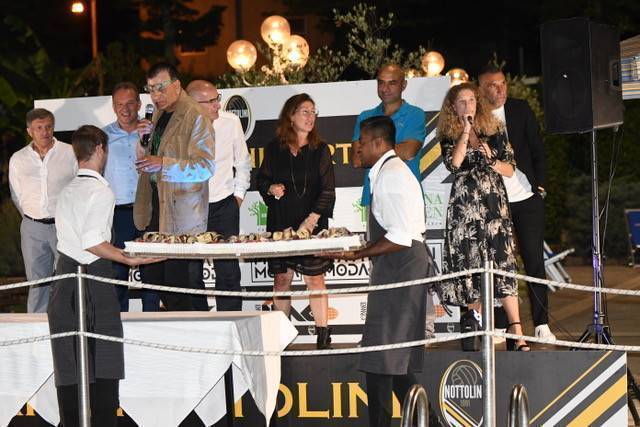 Per la cena di Gala è stato encomiabile il lavoro del vice presidente Enrico Bertini nel creare un'atmosfera intima e raccolta, lavorando fin dalle prime ore della mattina in simbiosi con la direzione dell'Hotel Country Club, in base al target della società e degli invitati, selezionando con cura l'allestimento dei tavoli ed affidandosi per l'impianto audio e luci al DJ Leo che ha lavorato senza sbavature consentendo la massima funzionalità. Nel corso della serata si è anche assaporato il clima del Palapiaggia grazie al D.S. Oronzo Miccoli, che, oltre a sapersi muovere sul mercato, riesce a scaldare l'ambiente con enfasi ad ogni partita facendo da speaker al momento dell'ingresso in campo delle squadre con uno start-six. Per il quadro dirigenziale non poteva mancare l'altro vice presidente Mauro Lucchesi che da tanti anni recita un ruolo importante a fianco di Paolo Gradi e dello stesso Enrico Bertini. Sulla pedana non sono sfilate soltanto le atlete ma anche coloro che lavorano tutto l'anno e che vengono poco ricordati come il fisioterapista Julian Lorenzetti ed il preparatore atletico Samuele Fiori, determinanti nella prevenzione, cura e riabilitazione delle atlete. Responsabile del settore giovanile e della squadra di serie C Paolo Vichi si è pronunciato favorevolmente sulla seconda squadra che avrà il doppio impegno fra il campionato Under 18 e serie C. Una squadra giovane composta da atlete di 16-17 anni che rappresentano il serbatoio della B1. Presenti anche i rappresentanti degli sponsor e fra i più soddisfatti della riconferma Michele Camarlinghi, titolare della Toscanagarden, il primo sponsor della prima squadra che farà l'esordio stagionale in B1 nel girone A l'8 ottobre a Caselle di Torino. Fra i più applauditi Erminio Artoni, autista e accompagnatore delle atlete, ed i custodi del campo Mariano e Domenico. Una serata coincisa con la festa di compleanno di Mavi Stefani alla quale è stato donato un mazzo di fiori e dedicato un gingle di auguri. Mavi, moglie di Enrico Bertini, è da anni molto vicina alle sorti bianconere.