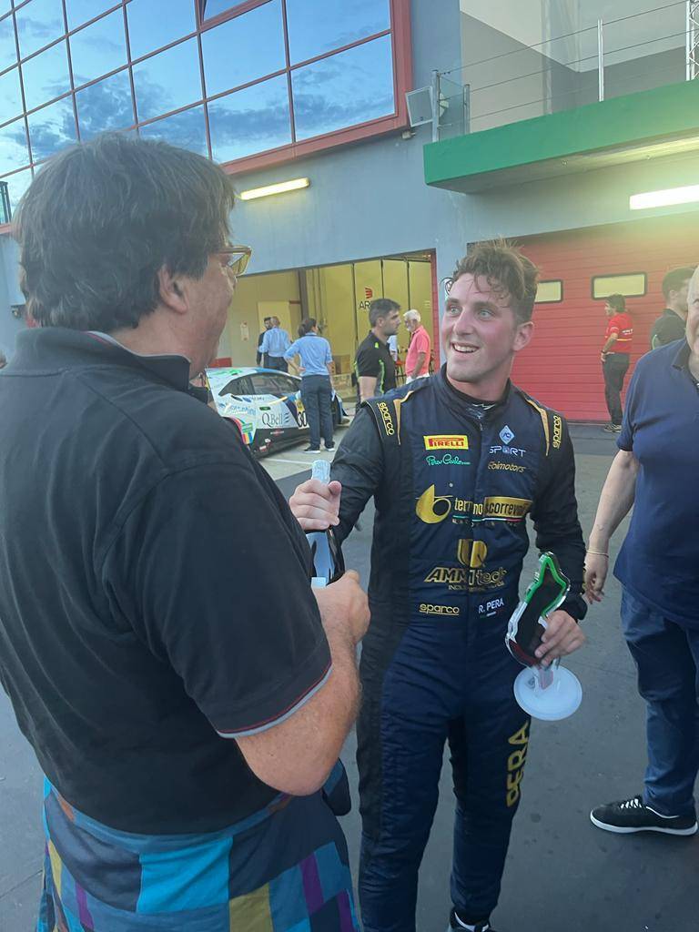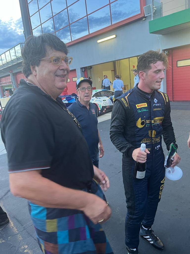 Ebbene, al termine della gara, da 18° Pera si è ritrovato al primo posto vincendo meritatamente dopo una serie di straordinari sorpassi. Paolone Barbieri non gli ha voluto far mancare il proprio sostegno insieme al padre Carlo Pera. Oggi di nuovo alle 15 in gara 2 partirà in seconda posizione.