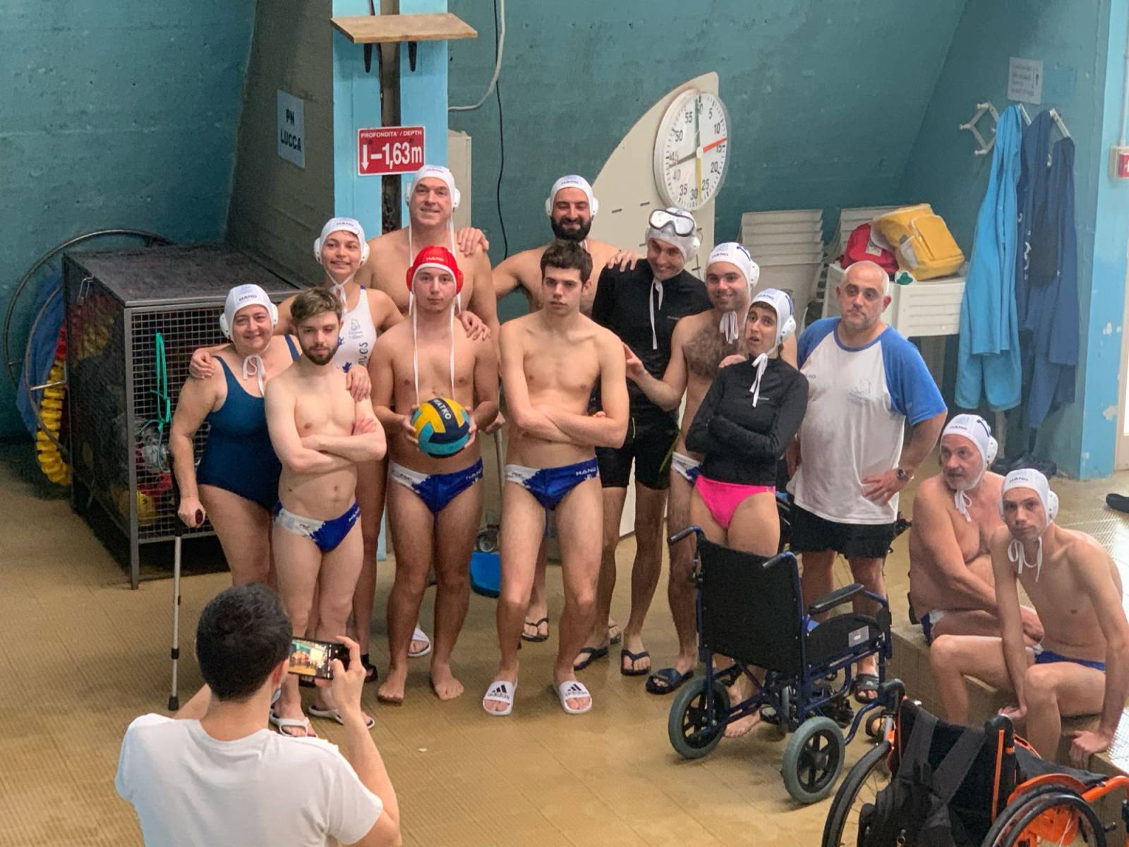 Circa quaranta atleti presenti, tanto divertimento e buona compagnia presso la piscina ITIS Fermi gestita dal Circolo Nuoto Lucca che da anni ospita la nostra associazione per il nuoto e soprattutto per gli allenamenti della pallanuoto adattata.