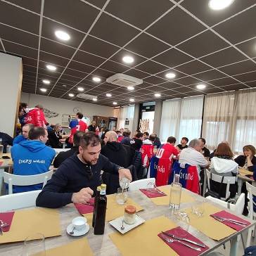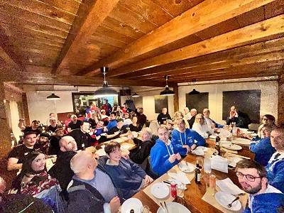 Al termine delle sessioni in acqua, le immancabili tavolate presso due locali della zona, con più di cinquanta tra atleti e accompagnatori affamati e pienamente ricompensati dalla proverbiale accoglienza e sapienza culinaria lucchese.