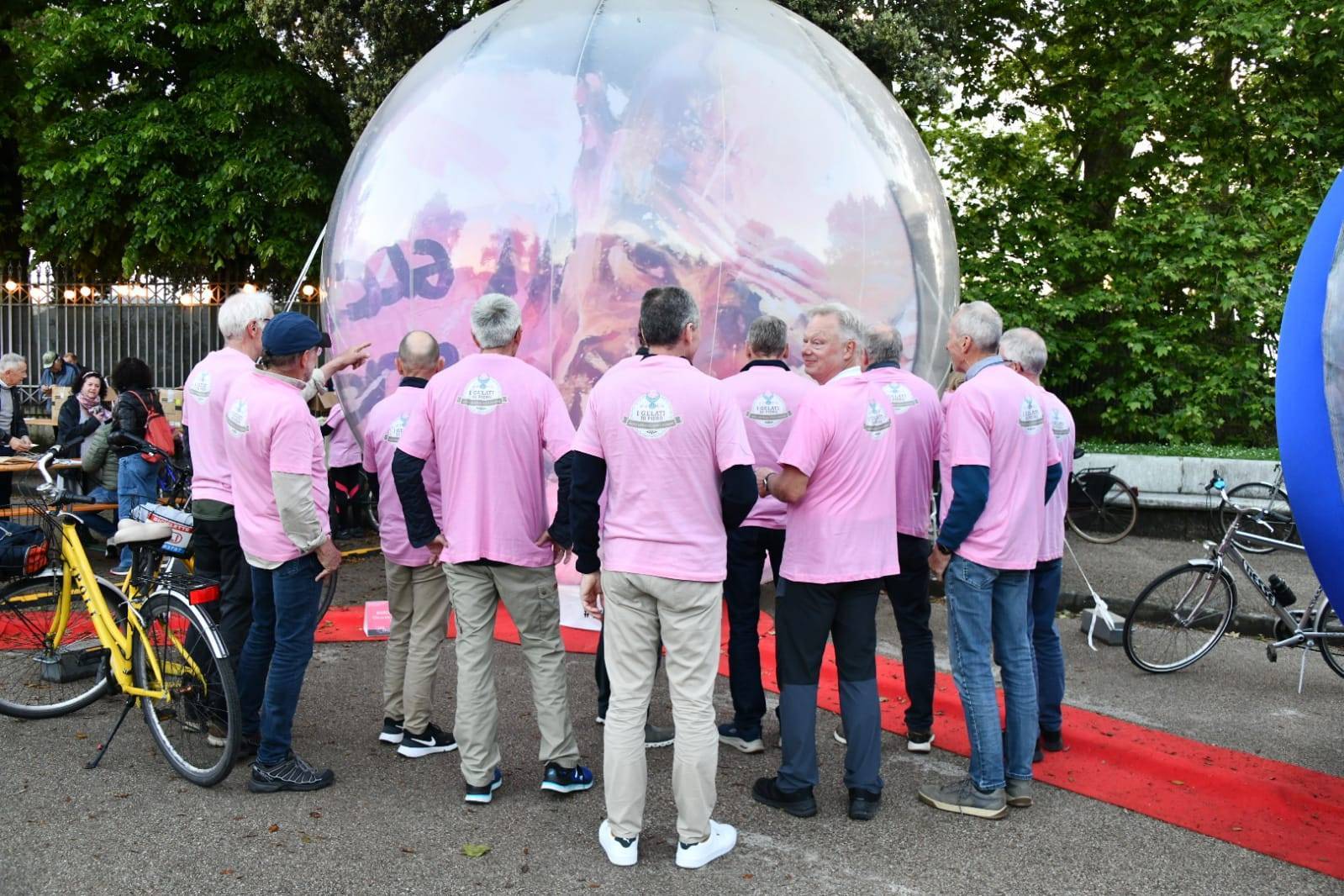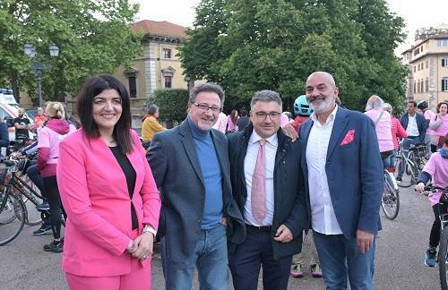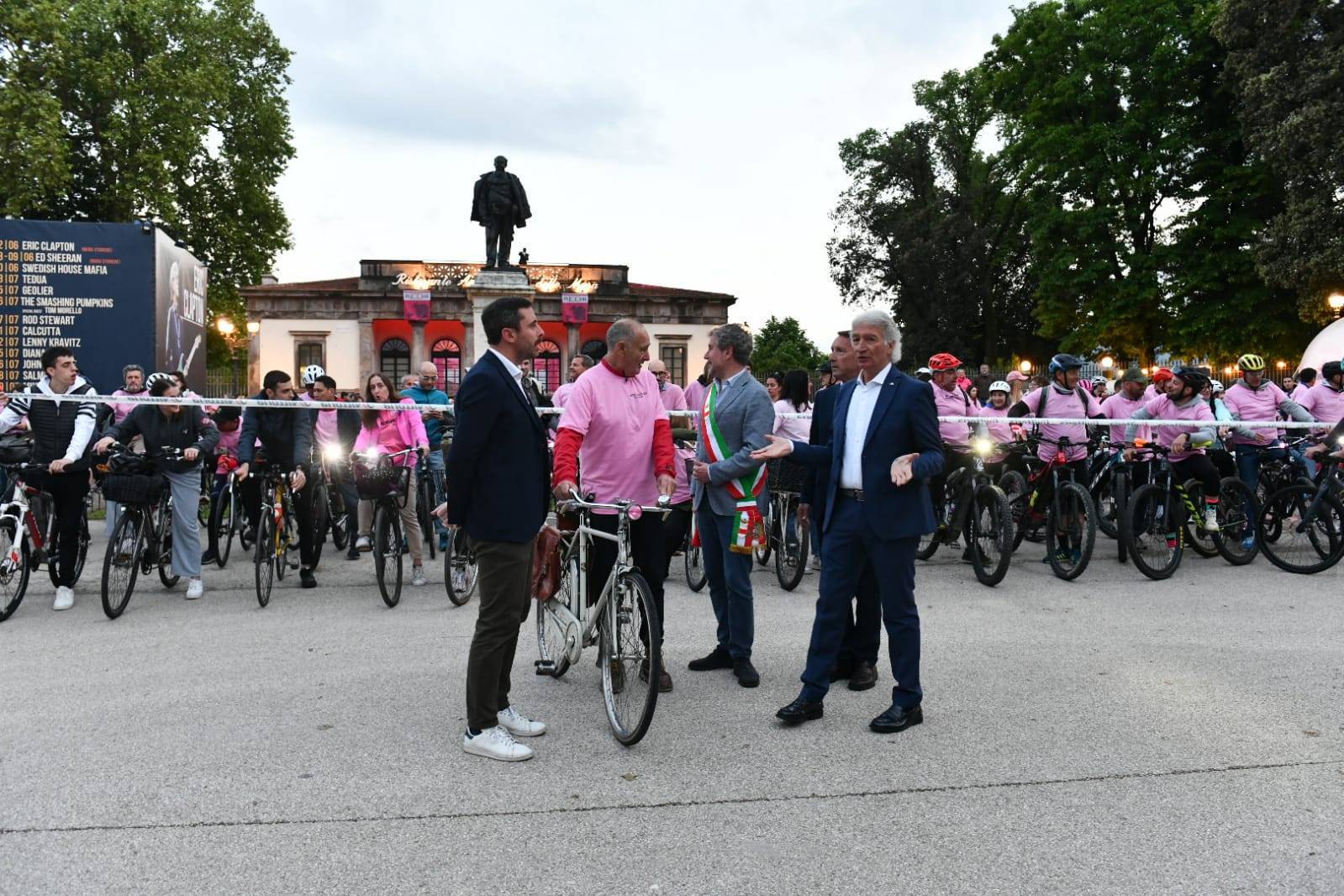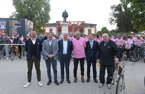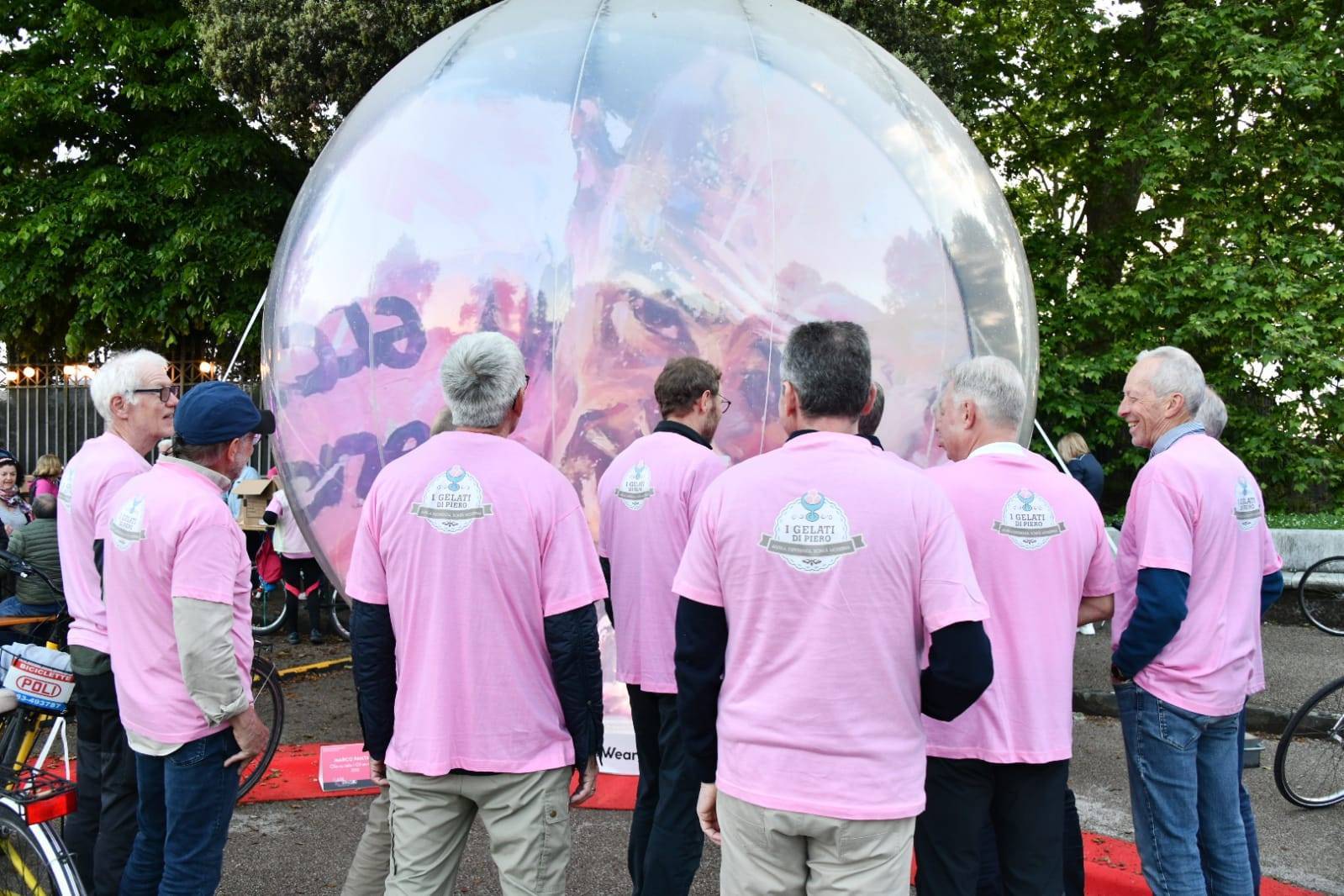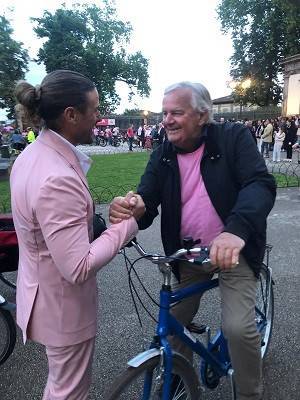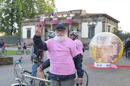 E una pedalata in rosa con le meravigliose magliette regalate da Piero Pacini e dai suoi gelati con tanto, in via Roma al suo negozio, il gusto dedicato proprio alla corsa rosa. Diciamo che Pacini ha omaggiato il Giro d'Italia molto meglio di come è stata organizzata la serata al Caffè delle Mura.