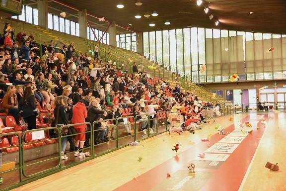 Primo fischio arbitrale e i peluche volano sul campo, si apre così la partita tra Bcl e College Borgomanero, un gesto con il quale il Bcl vuole dare un segno di vicinanza al reparto di Pediatria del San Luca di Lucca donando ai bambini presenti un piccolo peluche per allietare ed alleviare la loro presenza in ospedale. Il secondo fischio è quello buono ed il match inizia di gran carriera, al pari di una partenza della formula uno, tanto è veloce. Ad aprire i giochi è Pierini, poi Ferrari da tre e da li in poi è un continuo ribaltamento di fronte, a segno. Del Debbio chiude il primo quarto con 11 punti a referto, dalla sponda College, Ferrari con 12, per un primo parziale da 28/23. Anche il secondo quarto inizia con ritmi molto alti, Benzoni apre con una tripla e apre per un break da 0/7 poi è Lippi a fermare il trend dei novaresi. Zanetti mette a segno altri due punti e Tempestini recupera dai liberi, ma è dura per il Bcl, confrontarsi con i ragazzi di Di Cerbo, ragazzi che hanno nelle mani davvero tanti punti. Burgalassi e Del Debbio riportano il Bcl avanti Ferrari recupera ma i polsi di Del Debbio oggi sono particolarmente caldi e castiga di nuovo gli ospiti con una nuova tripla portando il suo score personale a 20 punti. Gli ospiti però non facilmente impressionabili e provano a rispondere immediatamente rimediando tre tiri dalla lunetta per chiudere sul 50/51.