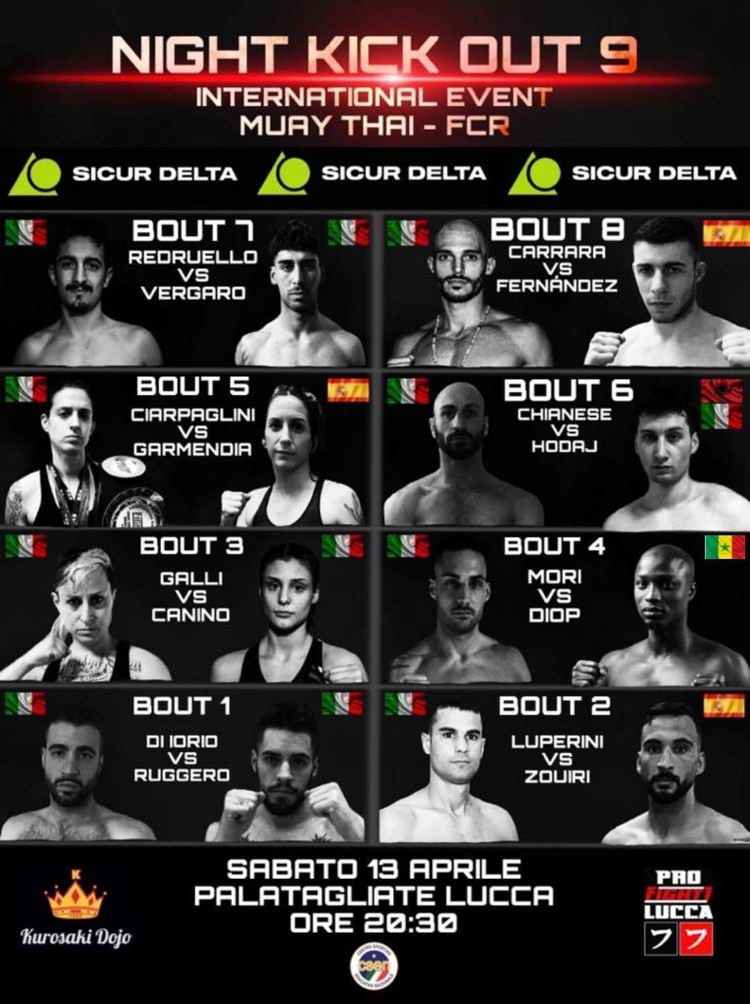 Il prossimo 13 aprile, con inizio alle ore 20, presso il Palatagliate, Lucca sarà nuovamente capitale degli sport da combattimento con la nona edizione del prestigioso galà internazionale Night Kick Out, organizzato dalla palestre Profight1 di Lucca e dalla Kurosaki Dojo di Pisa.