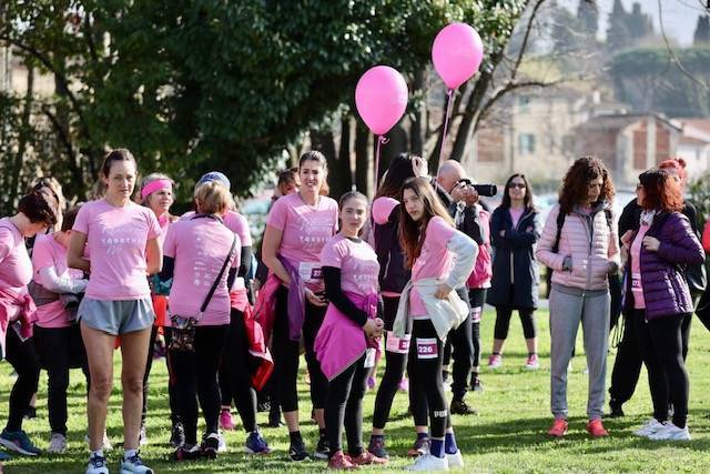 E la risposta delle donne alla proposta lanciata da Marina Malfatti e dal suo staff, con una Debora Pioli che ha accolto sul palco approntato per l'occasione, la partenza della corsa, è stata eccezionale. Sono arrivate alla spicciolata, il raduno era previsto per le 8.30, alcune delle quali in compagnia del loro fedele cagnolino con cui hanno condiviso la passeggiata lungo il fiume Serchio, un percorso iniziale di sei chilometri per chi non voleva esagerare e di dieci per le concorrenti più agguerrite. A tutte è stata consegnata una bellissima t-shirt di colore rosa in ricordo dell'appuntamento, regalo senz'altro gradito. Così come bella anche l'iniziativa di consegnare un palloncino colorato da portare con sé durante la corsa, ma legato al polso con l'invito a non lasciarlo volare in cielo proprio per non 'inquinare' ancora di più un ambiente già di per se stesso abbastanza sottoposto a stress quotidiani.