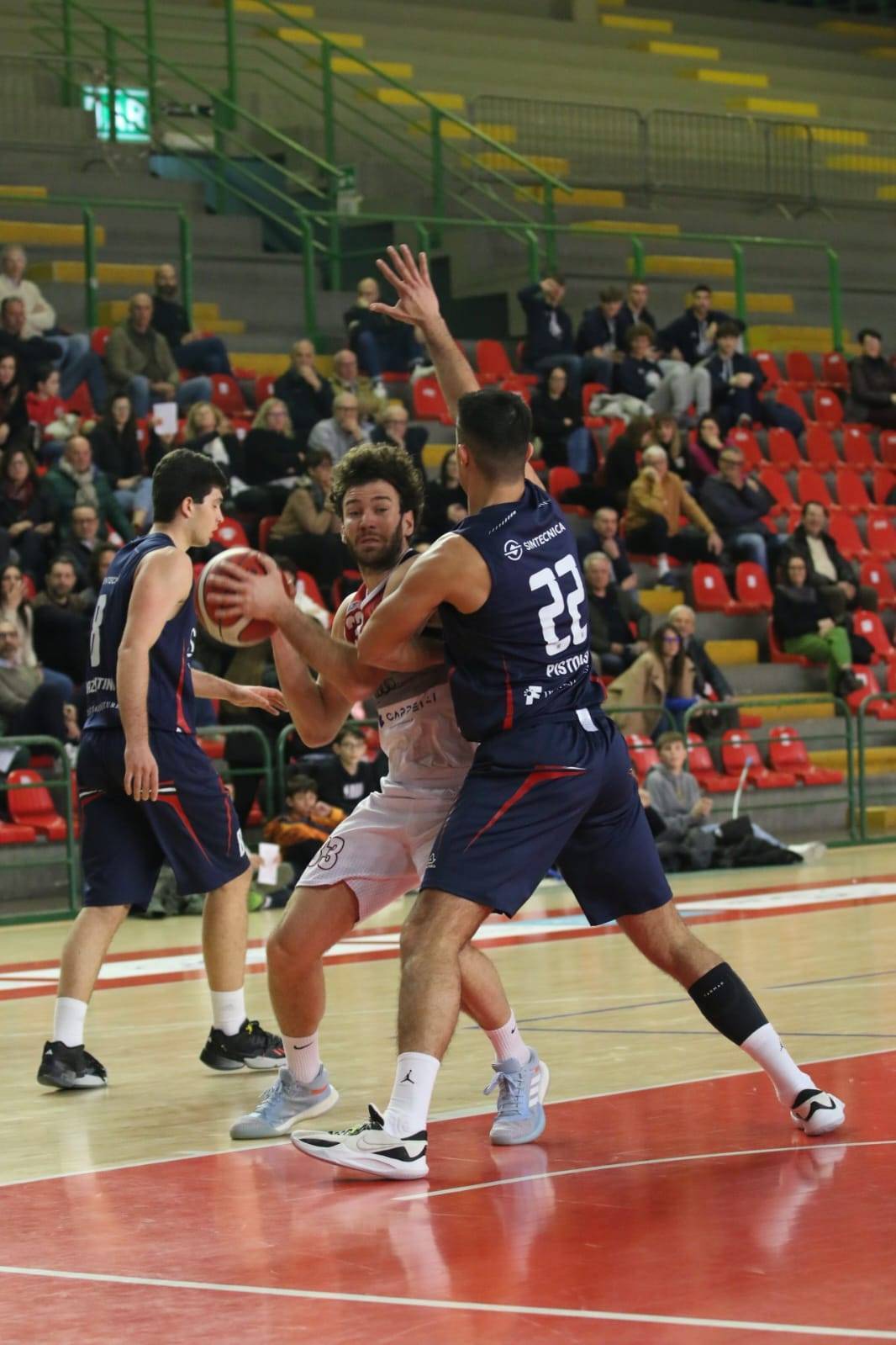 E' Trentin che interrompe la serie con una tripla per il 41/41, Bruni replica da due e Mazzantini dai liberi siglano il 43/45 finale.
