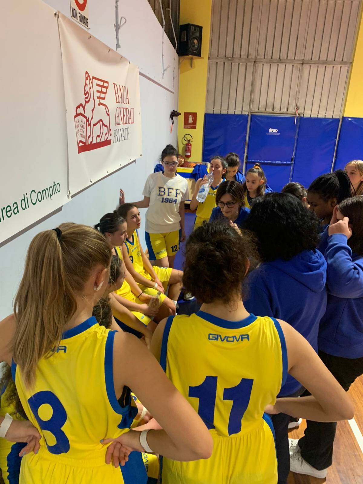 Bel pomeriggio di sport, riflessione e coinvolgimento dei più piccoli in occasione della decima di andata del campionato di serie B femminile. Si inizia con la presentazione delle madrine dell'evento per le scuole, le campionesse Nadia Centoni e Imma Gentile, alla presenza del responsabile sport del Provveditorato agli Studi prof. Oliva. Subito dopo, all'interno dei 107 secondi di silenzio previsti dalla FIP regionale in occasione della Giornata internazionale contro la violenza sulle donne, la lettura di una toccante prosa di W. Shakespeare con tutte le atlete disposte sul centrocampo.