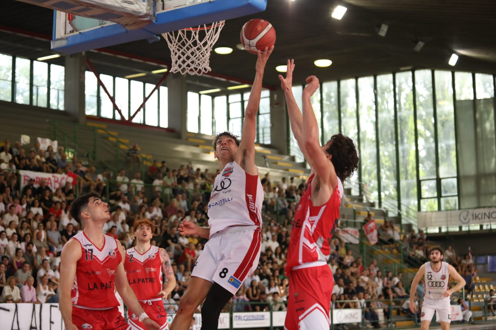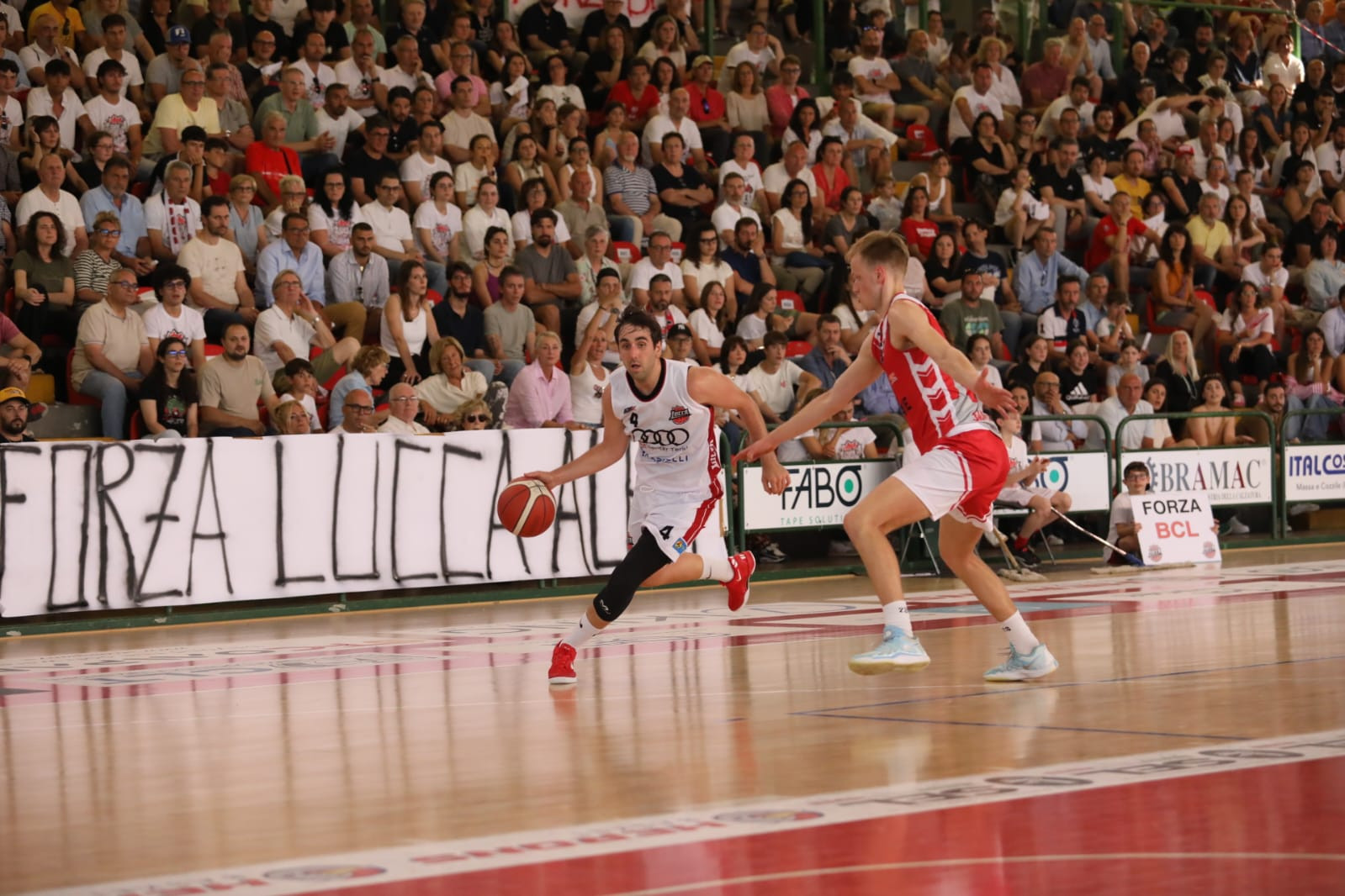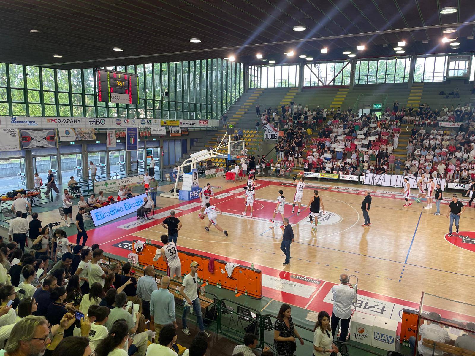 LUCCA - Dopo aver perso Gara 1 al Palatagliate contro Etrusca Basket San Miniato e aver riacciuffato la vittoria grazie ad un canestro da 3 di Drocker in trasferta, oggi Basket Club Lucca di Ugo Donati e Matteo Benigni ha raggiunto un risultato storico aggiudicandosi Gara 3 sempre al Palatagliate e il diritto a disputare la finalissima con in palio la promozione. Di fronte a oltre 1700 persone assiepate sugli spalti del palazzetto, i biancorossi hanno superato 59 a 46 gli avversari al termine del quarto tempo. A dire la verità, a metà gara, al momento di scendere negli spogliatoi, il vantaggio arrideva agli ospiti che dopo un iniziale svantaggio, colmavano il distacco e si piazzavano regolarmente in testa sia pure per pochi punti.