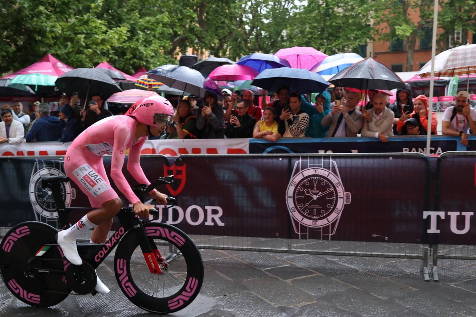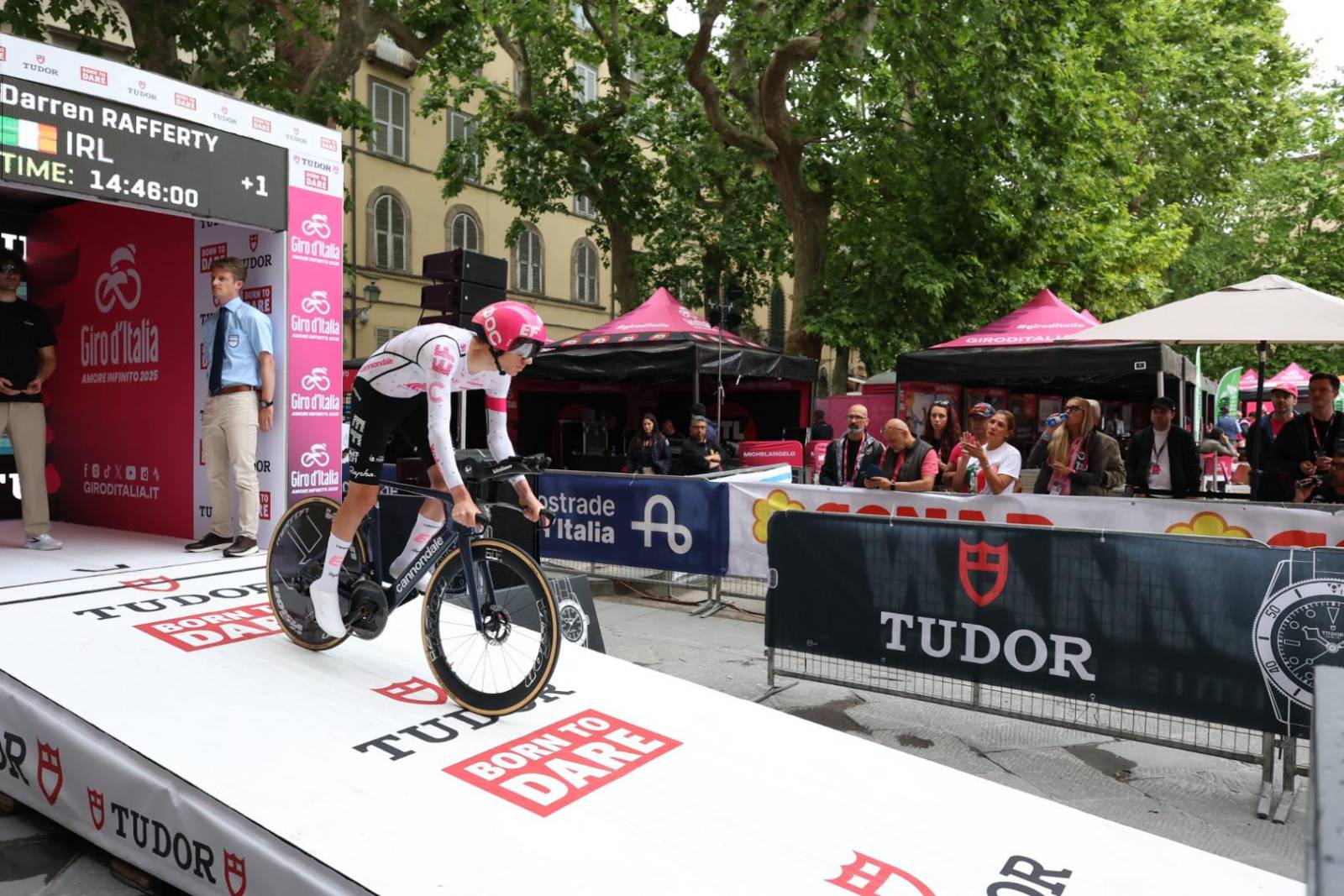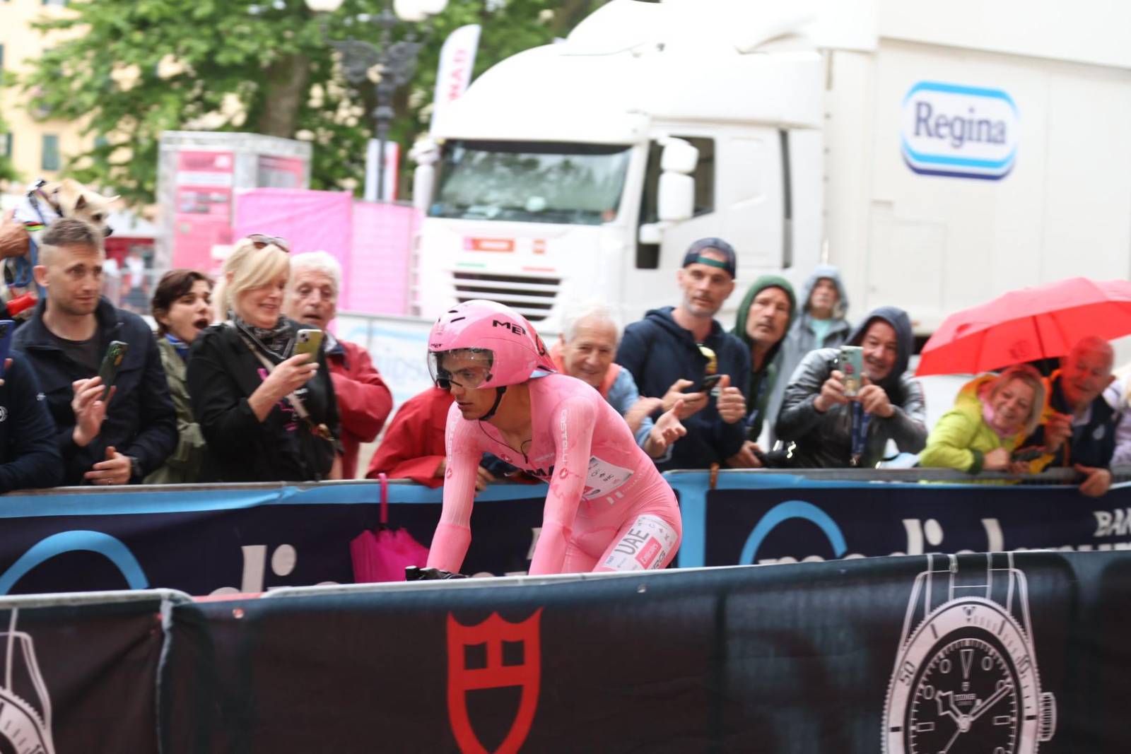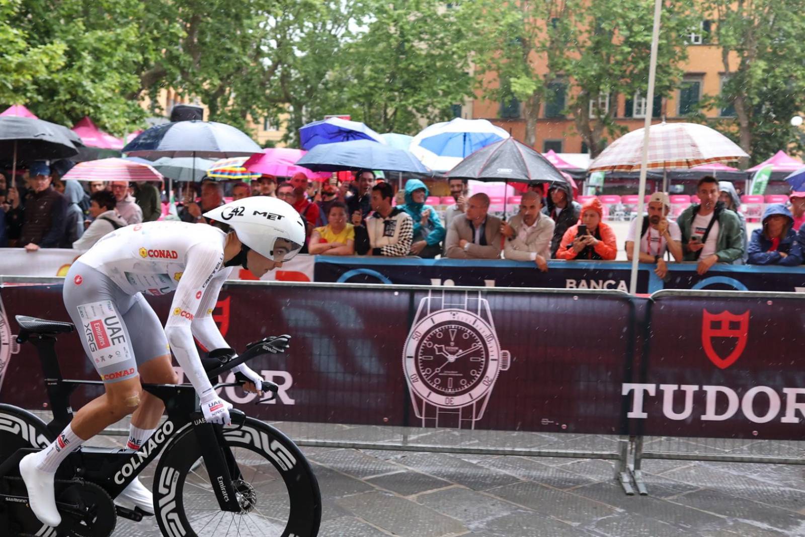 Particolarmente affollato il villaggio di partenza, con tutte le hospitality predisposte dall’organizzazione, e dove il pubblico presente ha potuto più volte assistere al passaggio dei campioni delle due ruote (171 i ciclisti al via), prima di recarsi al box di partenza e nei primi istanti di gara. Il primo concorrente ha preso il via alle ore 13.20. Il maxischermo allestito in piazza Napoleone ha poi permesso al pubblico presente di vedere, seppur sotto una leggera pioggia, tutto lo svolgimento della cronometro compreso le fasi finali della tappa che prevedeva l’arrivo a Pisa, sotto la torre pendente, in Piazza dei Miracoli. L’ordine di arrivo della 10^ tappa ha visto al primo posto l’olandese Daan Hoole, della squadra Lidl - Trek, che ha chiuso i 28,6 km in 32’:30’’ con solo 7’’ sull’inglese Joshua Tarling della Ineos Grenadiers e 10’’ su Ethan Hayter, britannico della Soudal Quick - Step.