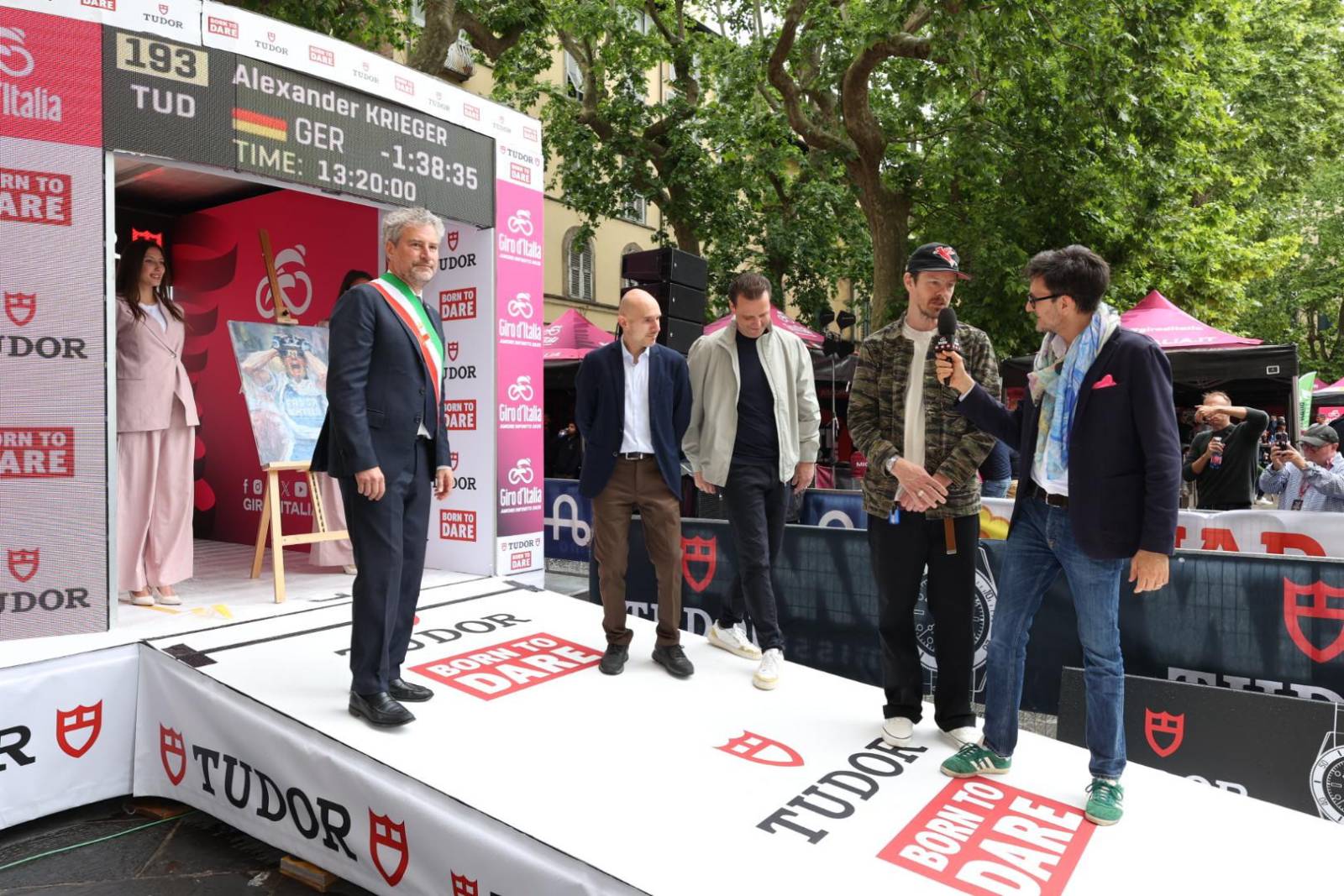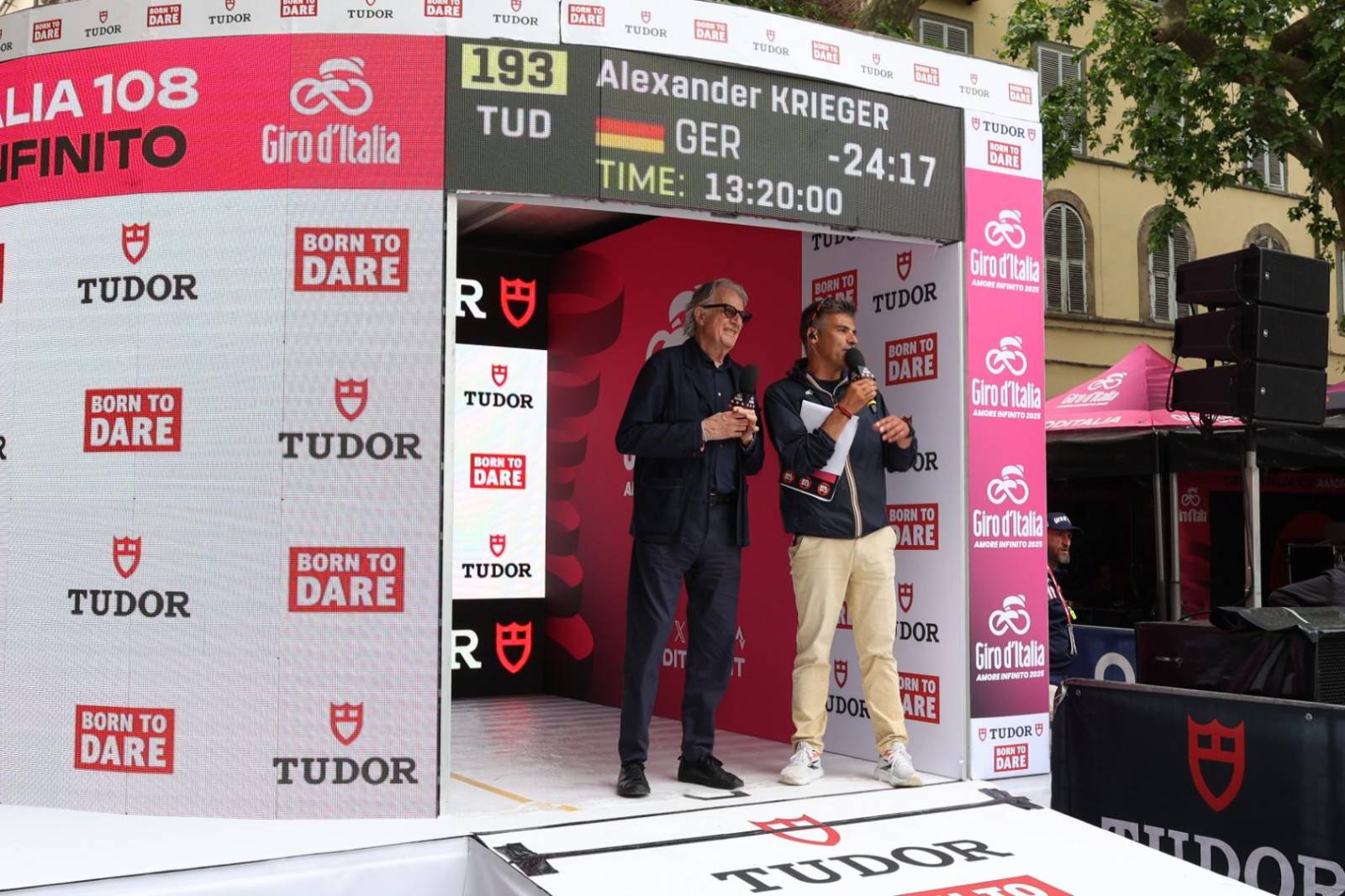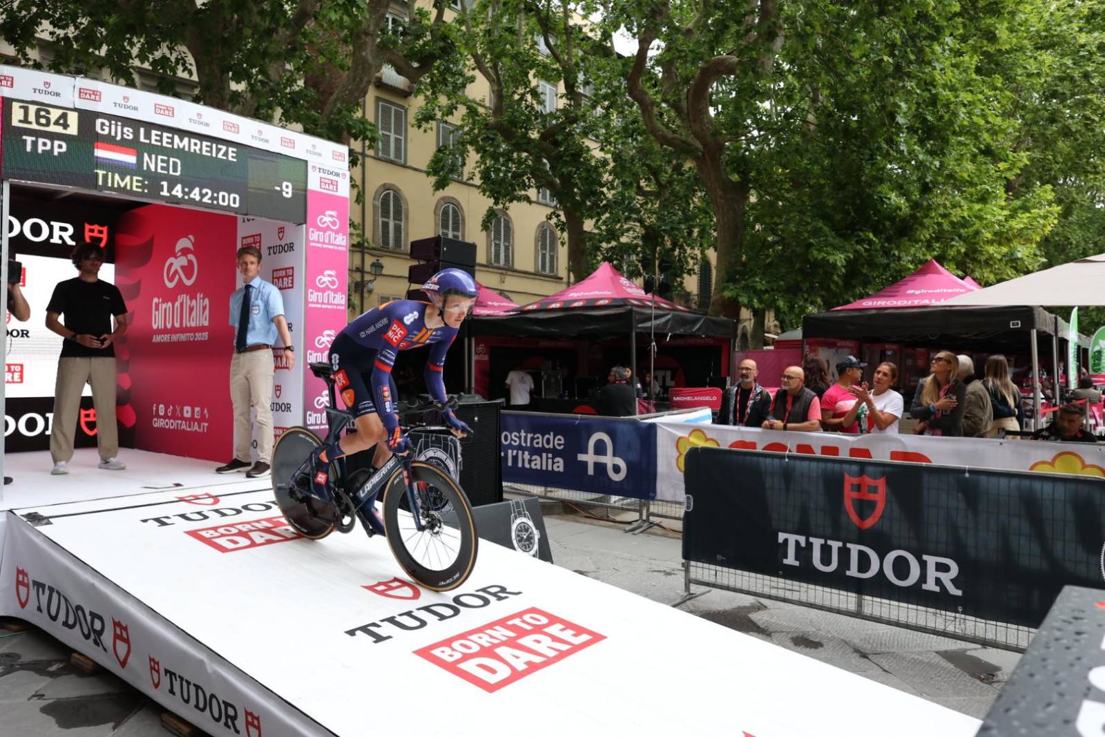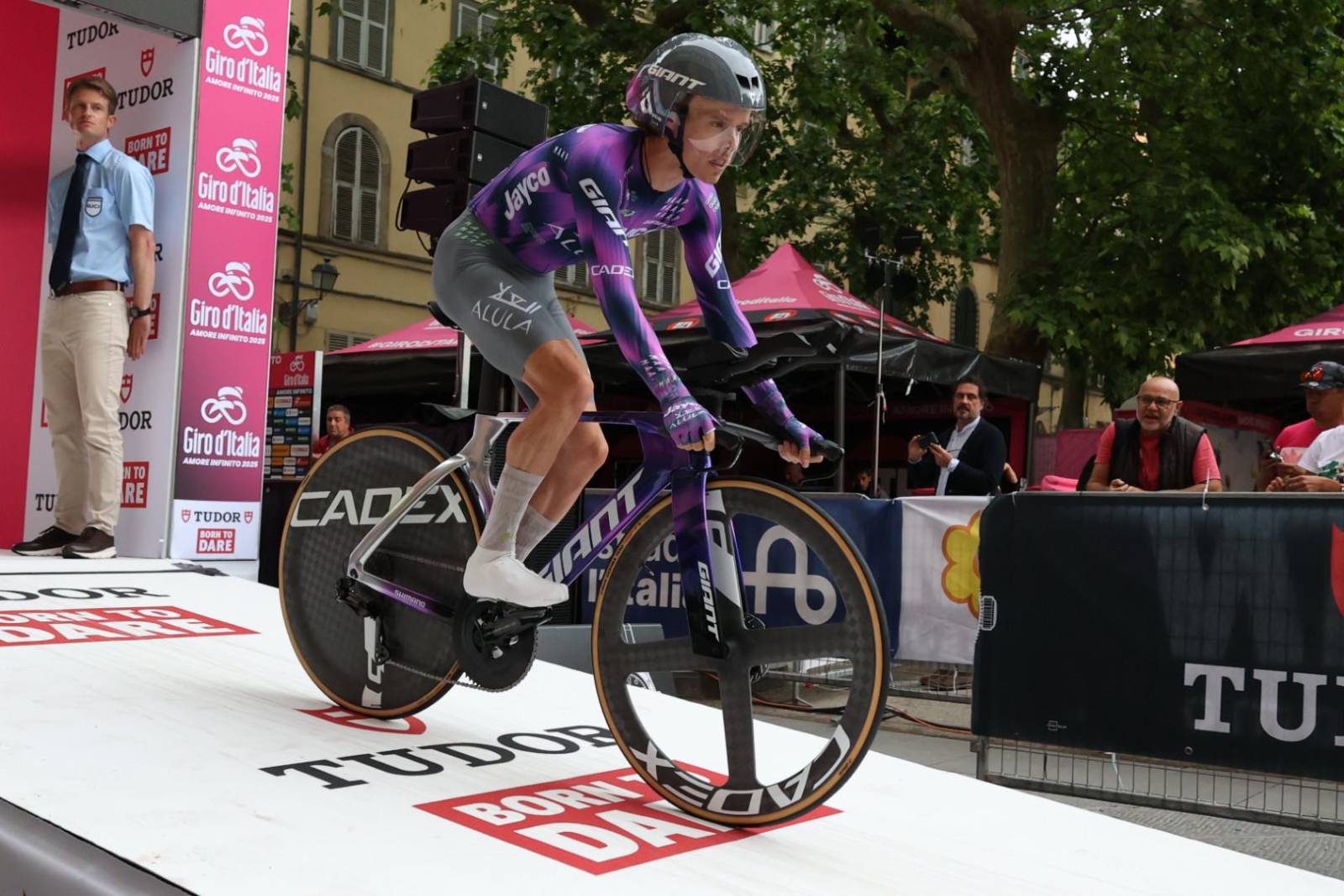 Particolarmente affollato il villaggio di partenza, con tutte le hospitality predisposte dall’organizzazione, e dove il pubblico presente ha potuto più volte assistere al passaggio dei campioni delle due ruote (171 i ciclisti al via), prima di recarsi al box di partenza e nei primi istanti di gara. Il primo concorrente ha preso il via alle ore 13.20. Il maxischermo allestito in piazza Napoleone ha poi permesso al pubblico presente di vedere, seppur sotto una leggera pioggia, tutto lo svolgimento della cronometro compreso le fasi finali della tappa che prevedeva l’arrivo a Pisa, sotto la torre pendente, in Piazza dei Miracoli. L’ordine di arrivo della 10^ tappa ha visto al primo posto l’olandese Daan Hoole, della squadra Lidl - Trek, che ha chiuso i 28,6 km in 32’:30’’ con solo 7’’ sull’inglese Joshua Tarling della Ineos Grenadiers e 10’’ su Ethan Hayter, britannico della Soudal Quick - Step.