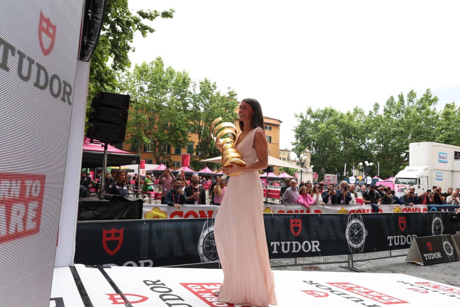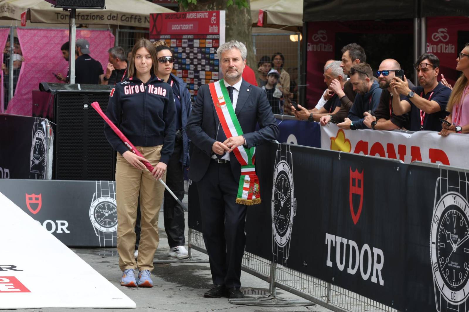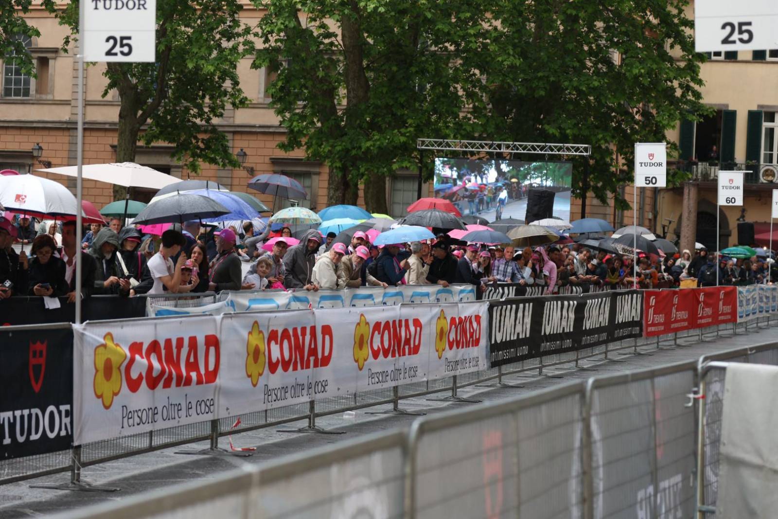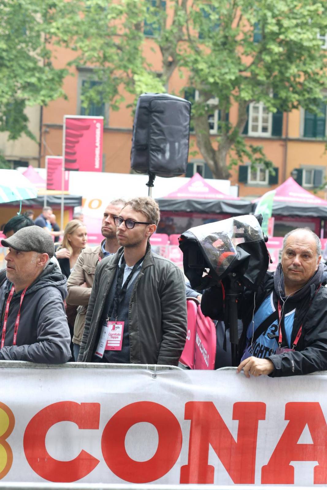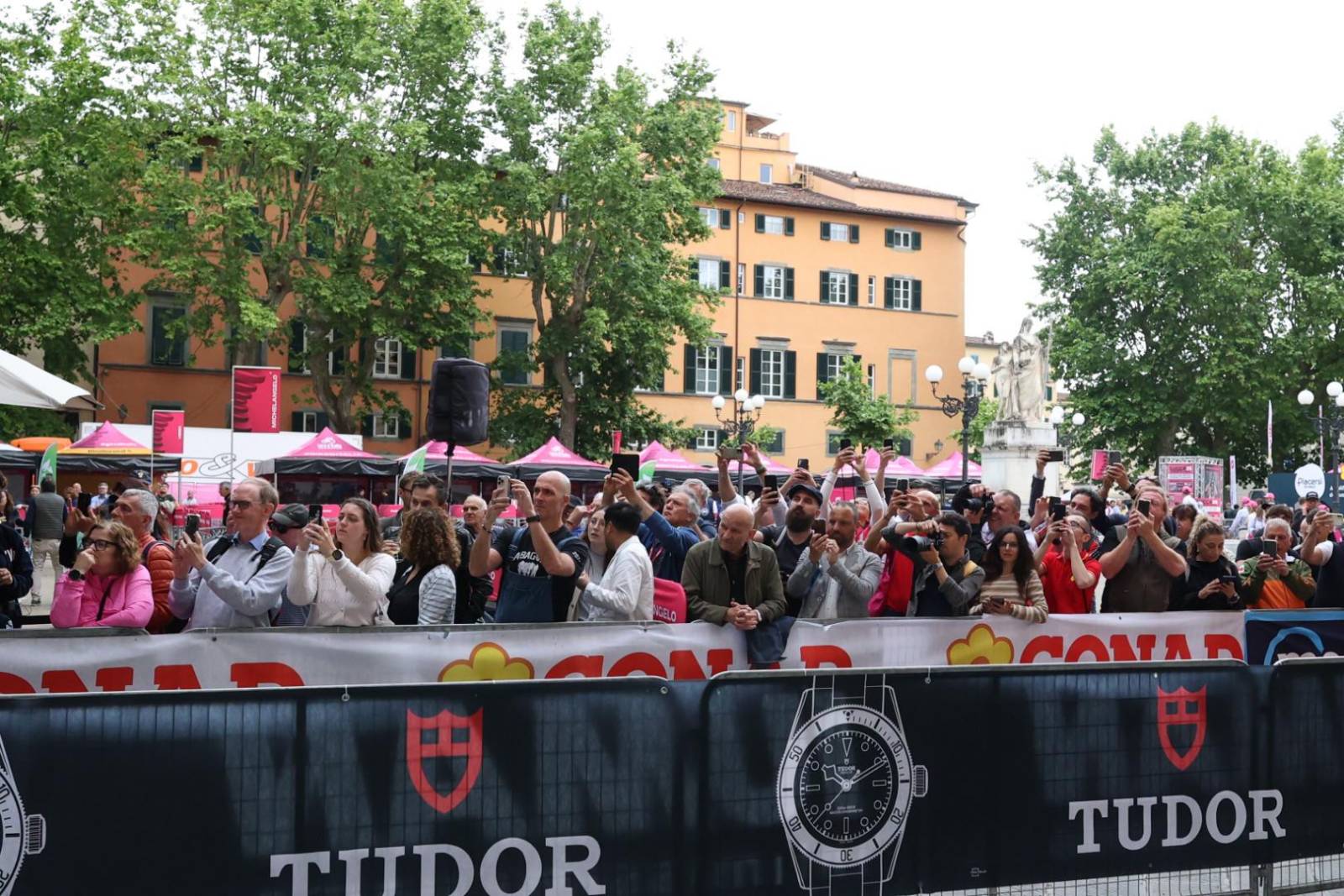 La lunga giornata in rosa, a Lucca, è in realtà iniziata molto prima dal momento che, già dalle 10 del mattino, i primi corridori hanno iniziato a provare il percorso che prevedeva una “passerella” sull’arborato cerchio. Nonostante il giorno feriale non è mancata l’affluenza di pubblico lungo le vie e nelle piazze del centro storico. Il tutto favorito, tra le atre cose, dalla moltitudine di stand ed eventi collaterali che caratterizzano questa manifestazione, a partire dalla carovana rosa che, da sempre, elargisce gadget e ricordi a grandi e piccini, sia nella location di partenza che lungo tutto il percorso.