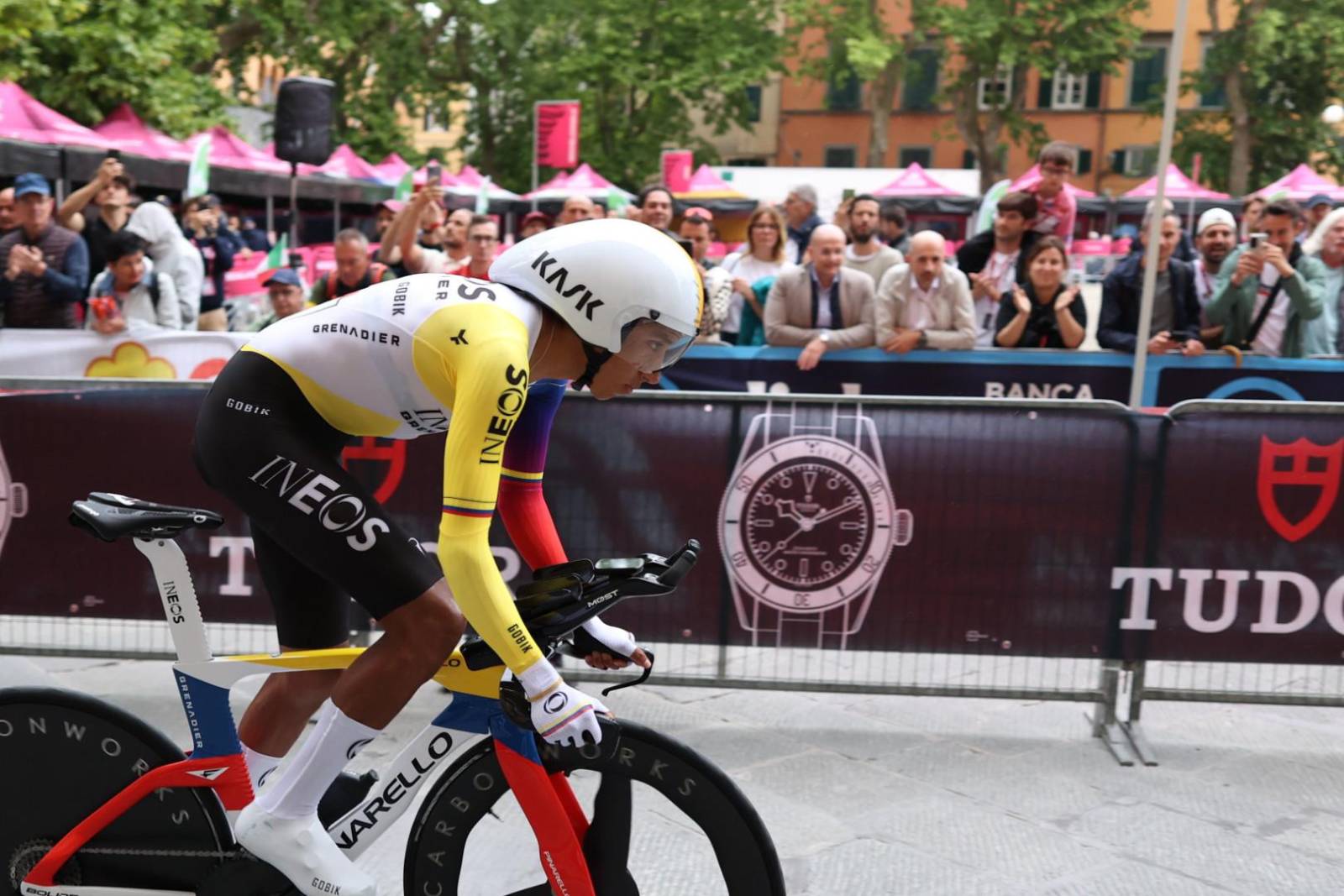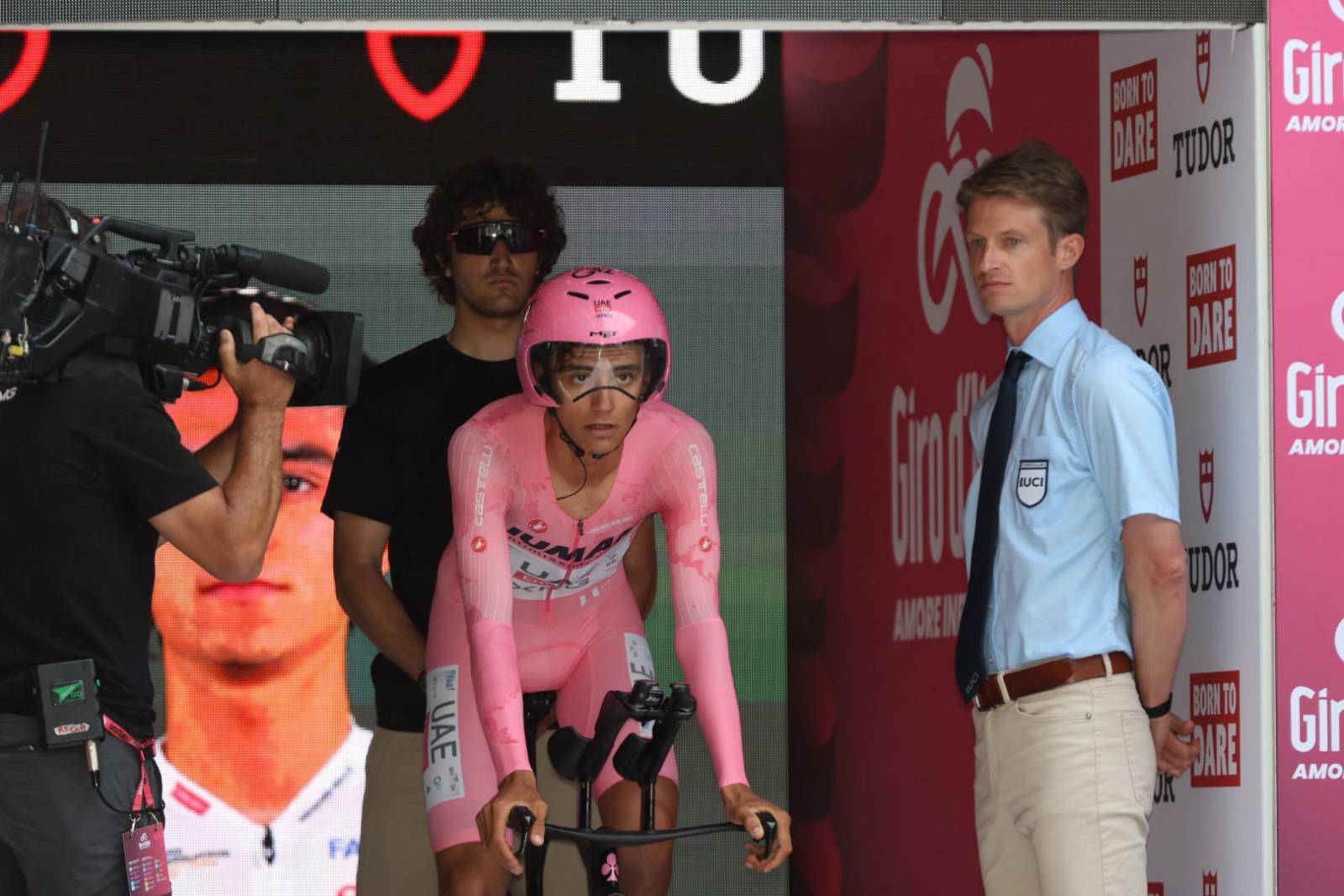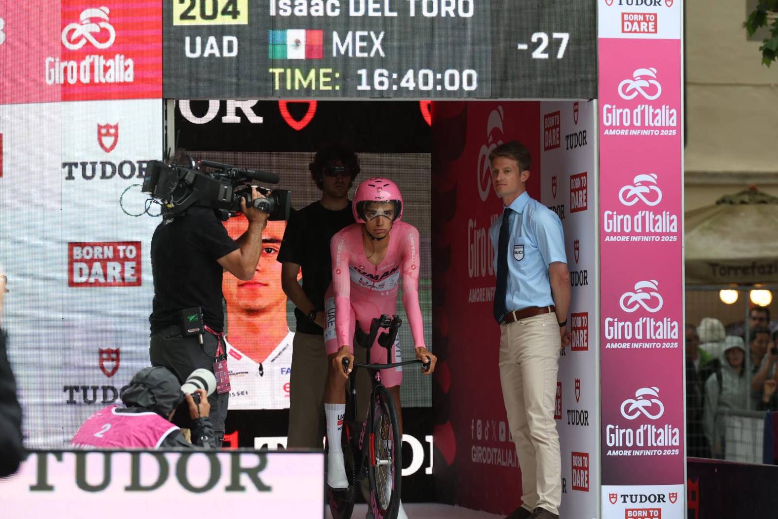 La maglia rosa del Giro d’Italia, Isaac Del Toro, primo ciclista messicano nella storia ad indossarla, è partito da Piazza Napoleone alle 16.40. Ultimo in ordine di partenza, ma primo in classifica di questa edizione numero 108 della corsa che mette in palio il trofeo “senza fine”.