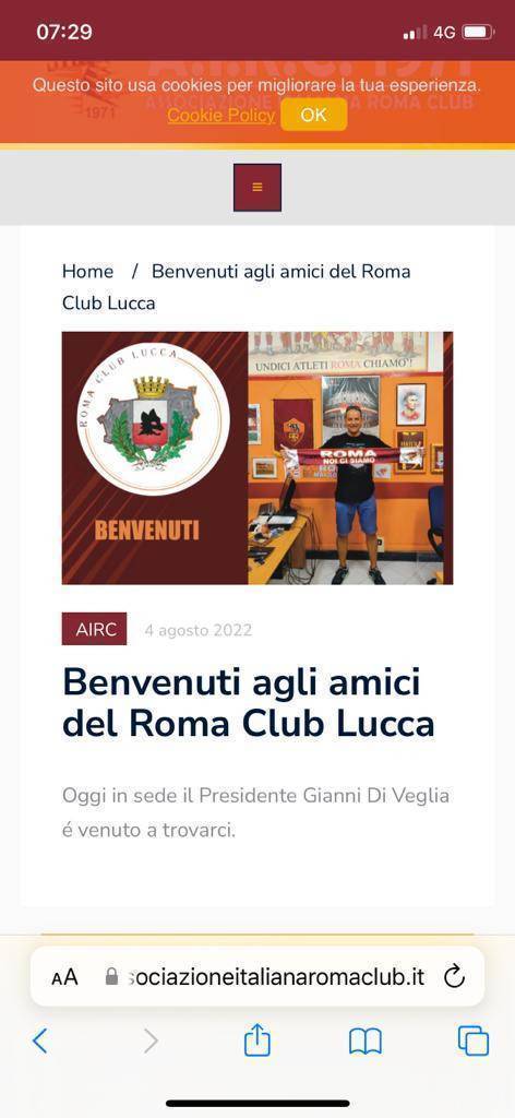 Il "consiglio" del Roma Club Lucca sarà formato da: Gianni Di Veglia (presidente), Stefano Scarpati (segretario), Antonio Pagano (consigliere), Valerio Pagano (consigliere) e Giovanni Lisi (consigliere).