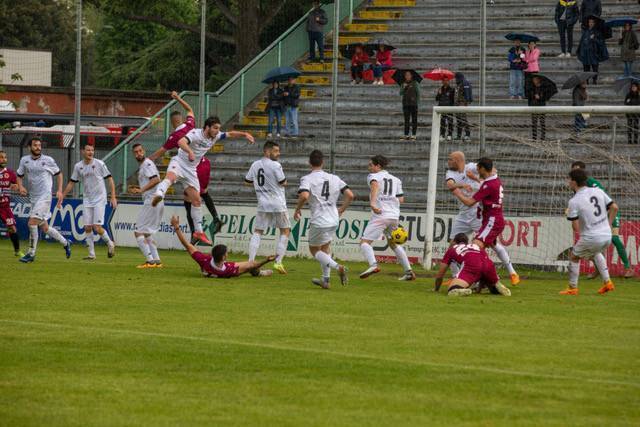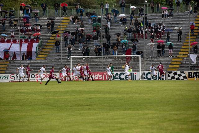 I padroni di casa, infatti, partono subito forte e sembrano non sentire la pressione della partita. Doveri e Fazzini sono particolarmente ispirati ed è proprio il numero 10 che al 16’ minuto strappa il pallone dai piedi di Giuliani sulla linea di fondo campo e confeziona un buon cross per Mengali, che gira di testa ma non riesce a tenere il pallone basso e la palla si perde alta sopra la traversa.