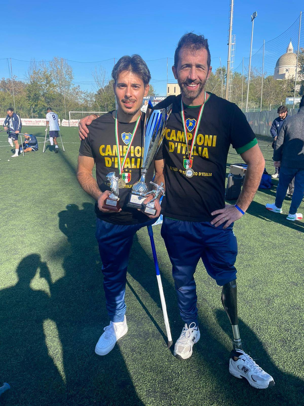 I due lucchesi Paolo Capasso e David Bonaventuri più il Lucchese adottato Daniel Priami, hanno conquistano nuovamente il titolo di campioni d'Italia nel Calcio Amputati, portando un'altra vittoria allo Sporting Amo Football. Questo prestigioso trionfo rappresenta una nuova pagina di successi per il team. Team che spesso è venuto nella cittadina lucchese per i loro ritiri. La stagione si è rivelata straordinaria, con Capasso e Bonaventuri che hanno dimostrato impegno, talento e spirito sportivo eccezionale. Il loro contributo è stato fondamentale per il raggiungimento di questo ambito titolo, suscitando orgoglio e ispirazione non solo tra i compagni di squadra, ma anche nella comunità più ampia di appassionati di calcio amputati. Capasso si prende il premio di Miglior giocatore del Campionato e Miglior Capocannoniere. Un anno incredibile arricchita dall'esperienza nel campionato polacco. Uno dei migliori se non il migliore talento azzurro. David Bonaventuri, lascia il calcio Amputati e lo sport agonistico con questo nuovo successo, l'ultimo di una lunga lista. Purtroppo alcune settimane fa gli è stato riscontrato un importante problema cardiaco che interrompe definitivamente la sua carriera sportiva.