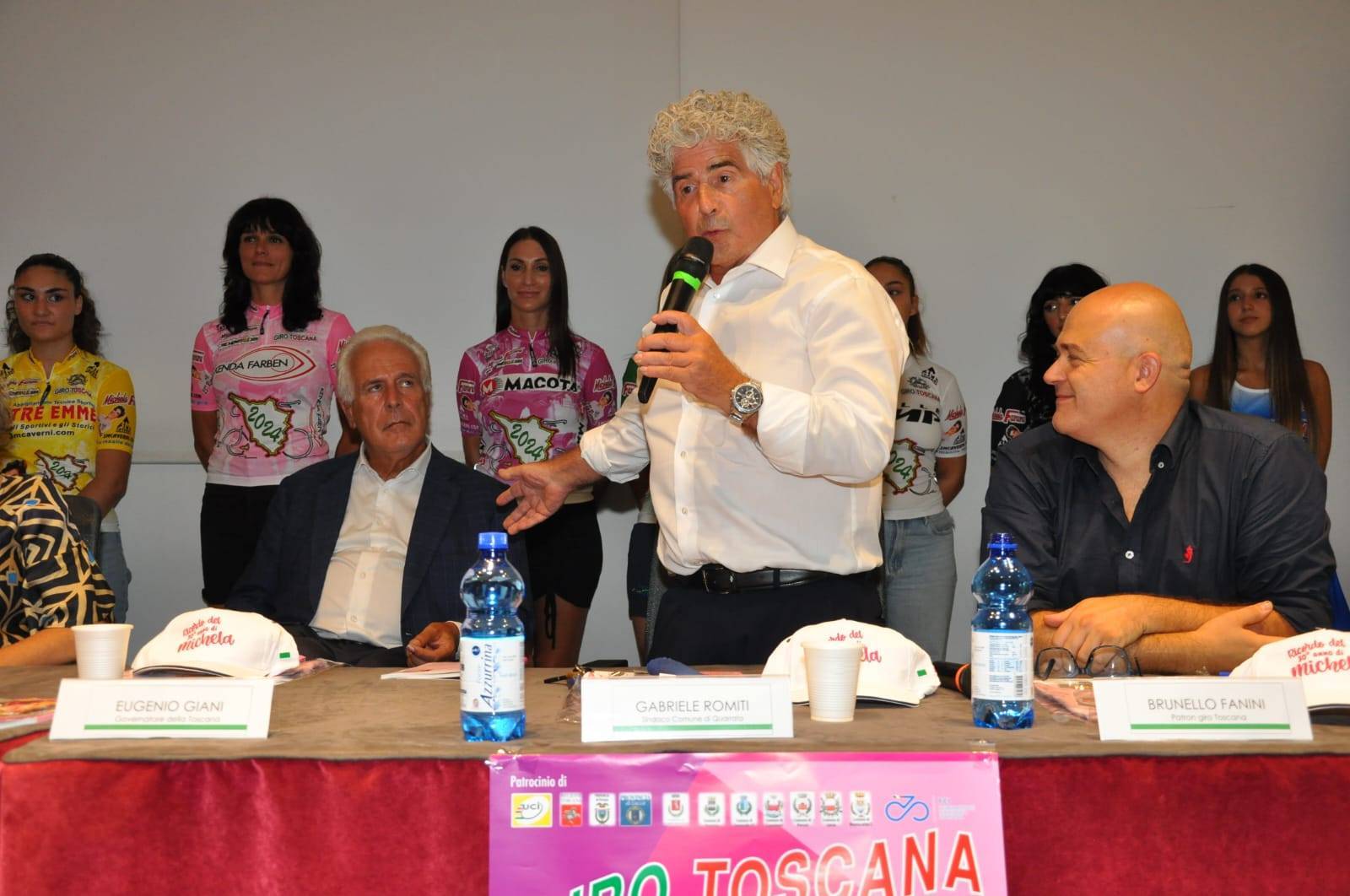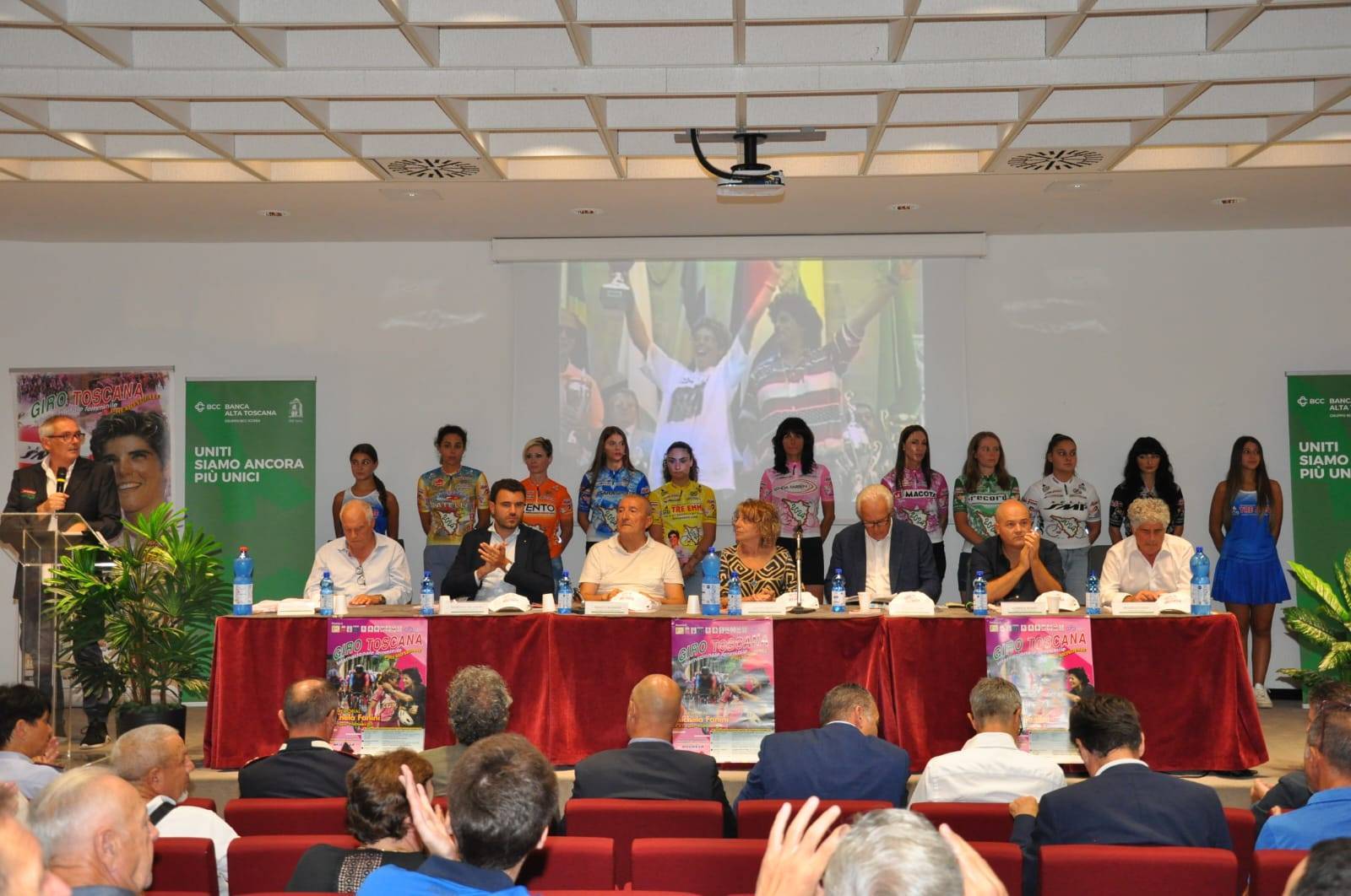 Attesa "quasi" finita... fra pochi giorni sarà tempo di Giro della Toscana Internazionale f.le, 28esima edizione.La manifestazione è stata presentata nell'Auditorium della Banca Alta Toscana di Quarrata (Pt). Tante persone per il battesimo di una delle manifestazioni ciclistiche (al femminile) fra le più longeve del panorama mondiale.Nutrita e qualificata la platea che ha fatto registrare anche la presenza di rappresentanti di tutti i comuni interessati alla quattro giorni.Fra questi da segnalare: il sindaco di Quarrata Gabriele Romiti, quello di Capannori Giordano Del Chiaro, di Porcari Leonardo Fornaciari... e ancora il vice sindaco di Lucca Giovanni Minniti e gli assessore Benedetta Vettori (Serravalle P.se), Patrizio Mearelli (Quarrata) e Davide Baldacci (Campi Bisenzio), il presidente del Consiglio Comunale di Montecatini Guido Ripa e il vice presidente della Provincia di Pistoia Gabriele Giacomelli.Sul palco anche il Presidente della Regione Eugenio Giani, a conferma dell'importanza del Giro, e il Presidente regionale del Coni Simone Cardullo.A fare gli onori di casa la presidente del Comitato Esecutivo della Banca Alta Toscana Sandra Bongi e il consigliere della Mutua Alta Toscana Franco Benesperi.In sala il presidente della Federciclismo toscana Saverio Metti e gli ex professionisti Edita Pucinskaite e Silvio Martinello.A chiudere il pomeriggio ci ha pensato il patron del "Toscana" Brunello Fanini.Il Toscana, che si svolgerà dal 29 agosto al primo settembre prevede 4 frazioni: un cronoprologo e 3 tappe in linea... 4 giorni di sport e di festa grazie anche alle numerose iniziative collaterali che quest'anno avranno come piatto forte la presenza di un ospite d'eccezione come Francesco Moser e di una madrina, altrettanto importante, come l'ex ciclista Mara Mosole.Subito qualche numero per capire la grandezza di una manifestazione giunta alla sua 28esima edizione: 160 atlete al via, 27 squadre... di queste ben 18 straniere (3 da altri continenti)... 40 nazioni rappresentate... una carovana che muove oltre 400 persone.Da sottolineare che, oltre ai normali premi messi in palio dall'organizzazione, ci saranno anche quelli artistici, molto ambiti e apprezzati, firmati dai ragazzi della Fondazione Maic (Maria Assunta in Cielo) di Pistoia.Vere e proprie opere d'arte ideate e create dai ragazzi diversamente abili che frequentano il laboratorio "Arte e Mestieri" del Centro di Riabilitazione pistoiese.L'organizzazione è firmata da patron Brunello Fanini e dal suo gruppo della "Michela Fanini".Il "Toscana" è dedicato all'indimenticabile campionessa lucchese Michela Fanini e, quest'anno (purtroppo) anche a mamma Giulietta.Le tappe:29 agosto (cronoprologo) - Campi Bisenzio-Campi Bisenzio (Fi), di 2.2 km30 agosto (1^ tappa) – Quarrata (Pt)-Serravalle P.se (Pt), di 110 km31 agosto – (2^ tappa) – Segromigno in Piano-Segromigno P. (Lu), di 117 km01 settembre (3^tappa) – Lucca-Montecatini Terme (Pt), di 129 kmIn Tv:- ampia sintesi tutte le sere su Rai Sport Hd (canale 58)- servizi sulle reti regionali (Tvl canale 14 e Noi Tv canale 12)- servizi speciali su Tvl e Noi Tv al termine della manifestazioneArticoli:- sulle cronache regionali di vari giornaliero- sui siti di giornali onlineSulla pagina fb della Michela Fanini Giro della Toscana... il Giro minuto per minutoCronoprologo: Campi Bisenzio (Fi)-Campi Bisenzio (giovedì 29 agosto)E' partito il count down per la 28esima edizione del Giro della Toscana Internazionale Femminile di ciclismo.Come ormai da tradizione... l'apertura del Giro della Toscana Donne è affidata ad una cronometro individuale lunga (si fa per dire) poco più di 2 km.2.220 metri di pura esplosione psico fisica per le vie del centro di Campi Bisenzio.Il percorso è pianeggiante ma con due insidie: due curve ad "U" che, visti i minimi distacchi possono fare la differenza.Qui non si vince il "Toscana, ma si può perderlo.Il programma prevede alle 15 la presentazione delle squadre (da non perdere) e alle 16 la partenza della prima atleta."E' con grande orgoglio – ha sottolineato il sindaco di Campi Bisenzio Andrea Tagliaferri - che vedo la nostra comunità unirsi ancora una volta per onorare la memoria di una atleta e celebrare la passione per il ciclismo"."Il Comune – ha aggiunto l'assessore allo sport Davide Baldazzi – è lieto di dare risalto a questa manifestazione perché riteniamo che il ciclismo esprima i valori fondanti dello sport"."Campi Bisenzio è un territorio pieno di appassionati di ciclismo – ha concluso Brunello Fanini patron del "Toscana" – che ha sempre creduto nel settore femminile anche quando una trentina di anni fa erano in pochi a parlarne... il boom del ciclismo in rosa lo si deve anche a questo comune".1^ tappa: QUARRATA-SERRAVALLE P.SE (venerdì 30 agosto)La città di Quarrata e la stupenda Rocca di Serravalle P.se tornano protagonisteal Giro della Toscana.All'indomani del cronoprologo di Campi Bisenzio... ecco la prima frazione in linea, forse non difficile, ma sicuramente insidiosa, soprattutto nel finale.Il via si avrà alle 13.00 dal centro della Città del Mobile, in piazza del Risorgimento.Dopo la partenza, e dopo alcuni giri in zona, si attraverserà la frazione serravallina di Casalguidi dove ci sarà il Traguardo Michela, che "regala" secondi preziosi per la classifica generale, posto proprio sotto il murale dedicato a Franco Ballerini.Le "girine", poi, proseguiranno verso il paese di Serravalle per il primo arrivo in salita della manifestazione. Uno strappo corto ma impegnativo che, però, darà importanti indicazioni sulle reali ambizioni di vittoria finale delle "big".Le ragazze transiteranno sotto lo striscione del traguardo, che sarà collocato davanti al Comune verso le 15.20/15.40 circa; le premiazioni verranno effettuate nello splendido scenario della Rocca Nuova, poche decine di metri dopo.Attenzione: nel suggestivo borgo serravallino non si vincerà il "Toscana"... ma si potrà perderlo.Da sottolineare la bella iniz
