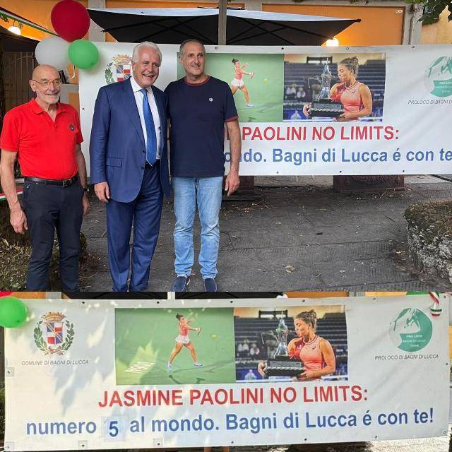 A Bagni di Lucca ci speravano e ci credevano che Jasmine potesse regalare una nuova gioia anche nelle Olimpiadi di Parigi, dopo gli ultimi incredibili mesi: così, ottenuto il pass per la finale venerdì, l’amministrazione comunale si è organizzata, in fretta e furia, per permettere ai tanti sostenitori della cittadina termale di seguire e tifare per l’eroina della Mediavalle. Un maxi schermo è stato allestito in un Teatro Accademico vestito a festa con striscioni, bandiere e palloncini tricolori ma un po’ tutta Bagni di Lucca si era organizzata: altro schermo era collocato a Villa Webb, i principali locali e bar del centro storico erano sintonizzati sulla diretta olimpica. Tanta gente, come detto, nonostante il caldo, ha assiepato il Teatro: tra le autorità il sindaco Paolo Michelini e la giunta al completo, l’assessore regionale Stefano Baccelli e il consigliere dell’Unione dei Comuni Yamila Bertieri. L’incontro per l’oro era il terzo di giornata ma la lunga attesa non ha fiaccato la voglia dei presenti di tifare Jasmine. Il pubblico ha seguito con apprensione e trasporto tutte le fasi del match, come se le giocatrici potessero sentire gli incitamenti attraverso il monitor: inizio di partita equilibrato, poi Andreeva e Shnaider prendono il sopravvento e allungano. La maggiore potenza della russa e della bielorussia non trovano le contromisure da parte di una Paolini contratta che sbaglia molto da fondo campo. Il primo set sfugge via 6-2 e per le azzurre la strada è in decisa salita. L’inerzia del match cambia completamente nella seconda frazione, le azzurre sono finalmente protagoniste e rispondono botta su botta alle avversarie. 2-0, sfumano le palle per il 3-0 ma è solo un attimo perché il secondo set si chiude in favore di Paolini Errani 6-1. La vittoria si decide al match tiebreak dove le azzurre fuggono, 2-0, poi 4-2. Scambi spettacolari che tengono col fiato sospeso i presenti che esplodono in boati liberatori fino al match point finale e alla vittoria! Grazie Jasmine! Grazie Sara! La festa prosegue all’esterno del Teatro dove vengono fatti volare nell’aria palloncini tricolori e le autorità si concedono alle interviste delle televisioni nazionali. Partono vari caroselli festosi per la strade di Bagni di Lucca, è festa grande! Questa volta si può gioire fino in fondo!