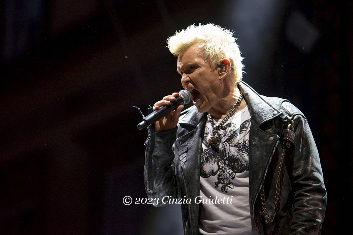 Ad accendere la folla per l'inizio del concerto è stata Pretty Vacant dei Sex Pistols, direttamente dal lato B dello storico album Never Mind the Bollock, Here's the Sex Pistols, l'unico della band inglese registrato in studio. Già dal primo rombo delle casse, Billy Idol, storico cantante dei Sex Pistols sembra scrollarsi di dosso gli oltre 65 anni che, per uno come lui, esistono solo sulla carta d'identità. Cominciano così due ore di performance in cui l'intero gruppo sembra fondersi con le prime file, galvanizzate da un punk rock che scivola nelle vene e batte il ritmo sulle ossa.