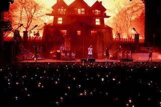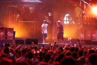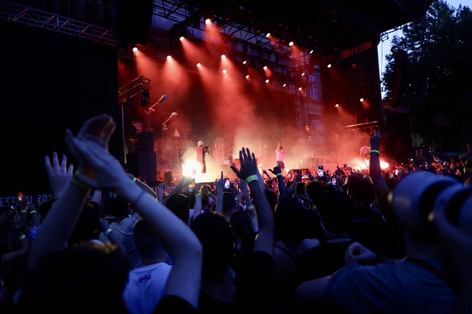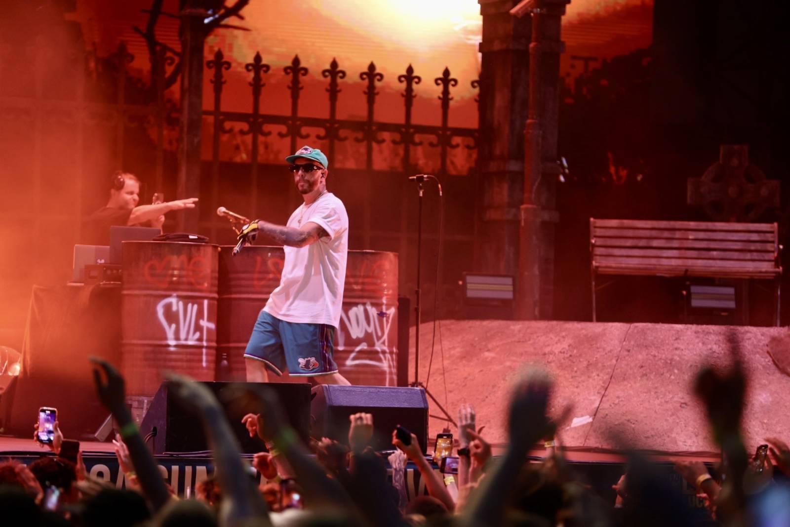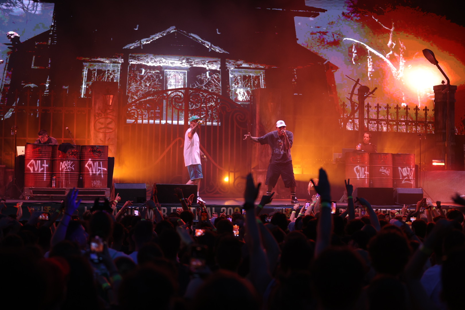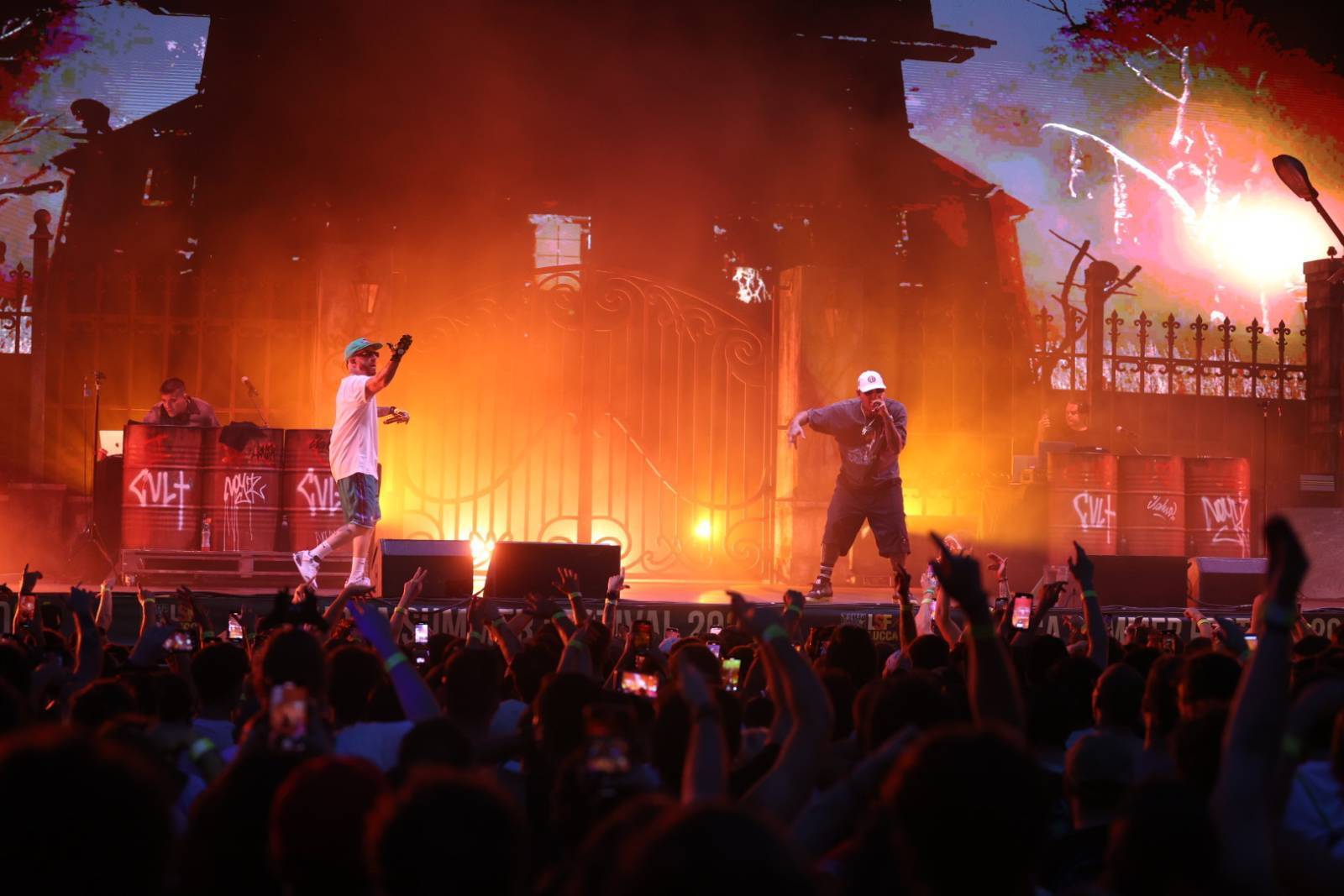 A tal proposito, “CVLT” ha scalato tutte le classifiche e, dopo un solo un giorno dall’uscita, ha conquistato il primo posto nella classifica di Apple Music. Tutti i brani si sono posizionati nella Top 20 su Spotify e nella Top 25 su Apple Music, mentre la Chart dei brani di tendenza di Amazon Music vede 10 brani dell’album di Salmo e Noyz nella Top 50. Il disco è un manifesto di ciò che da sempre caratterizza la produzione dei due rapper. Un immaginario ben definito, che pesca a piene mani dal rap, dall’hip hop, dal cinema, ma anche dalle rispettive carriere, omaggiate a più riprese. Il rap è al centro di un viaggio che trova spazio attraverso diverse declinazioni, senza mai allontanarsi dalla matrice originale. Il disco riflette al 100% le personalità di Salmo & Noyz Narcos e conta collaborazioni scelte tra cui Marracash, Kid Yugi, Coez e Frah Quintale. Il concerto, definito da Salmo un live “culto ed esclusivo” ha preso forma, a misura “horror”, con un improvviso e repentino cambio di scenografia che, dalla staticità del Bates Motel, è passata, sulle note di Maledetti, Grindhouse e Nightcrawlers, ad una suggestiva e licantropica trasformazione live dei volti dei due artisti ma anche del pubblico presente in piazza. In un’atmosfera noir illuminta da centinaia di luci in festa, le due iconiche star del rap italiano hanno concluso la loro performance con i brani L’odio, Non dormire e La fine. Ma prima dell’immancabile selfie di gruppo a chiusura del concerto, Salmo e Noyz Narcos hanno tenuto a sottolineare: “La musica dal vivo è importante, migliore di tutto quanto passa sui canali social. Stasera il pubblico di Lucca ha “spaccato” (in senso positivo n.d,r.) e si vede che siete persone intelligenti”.