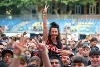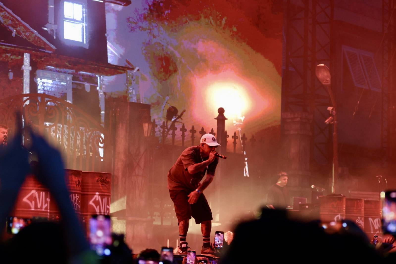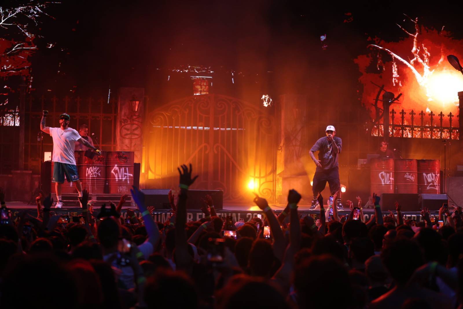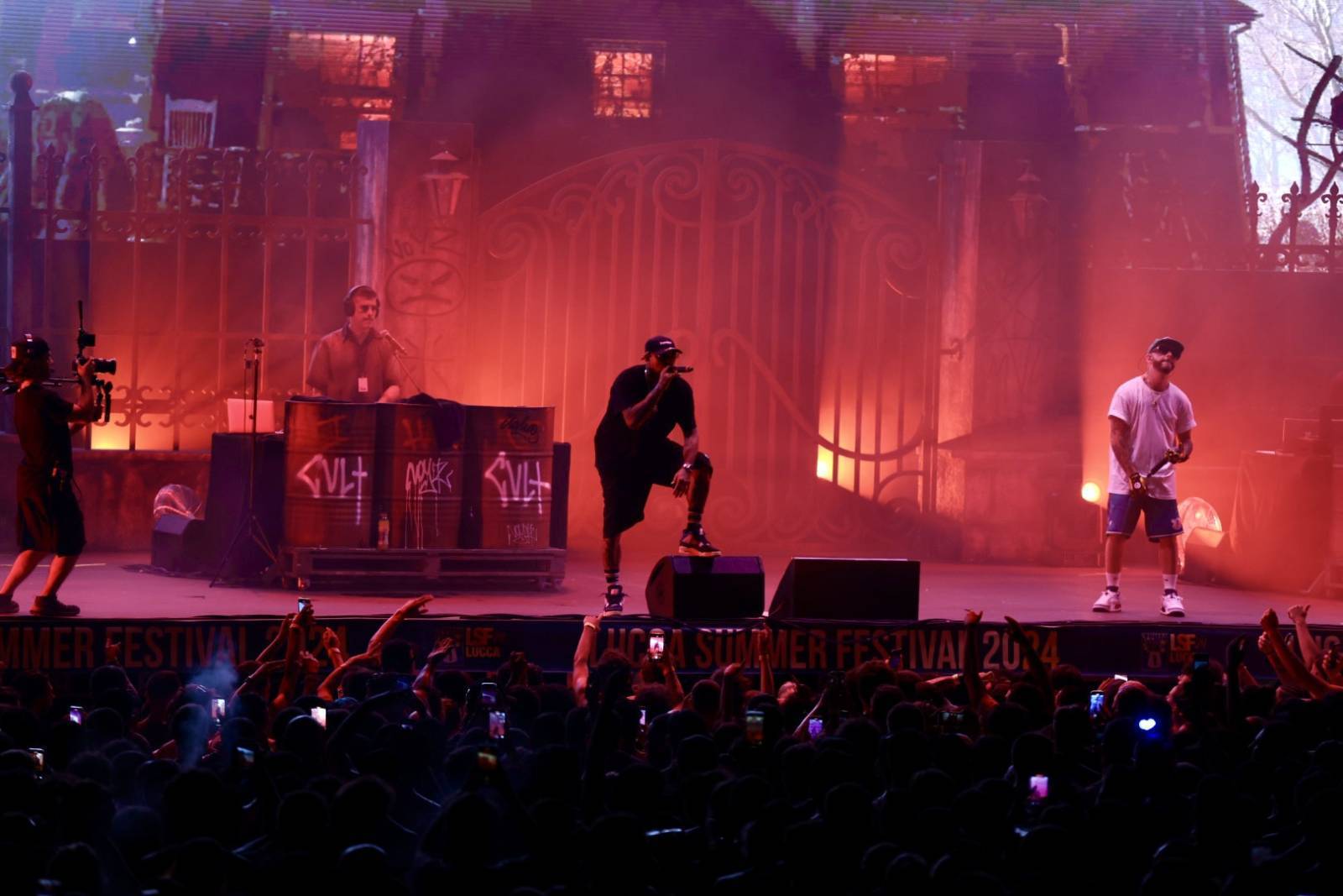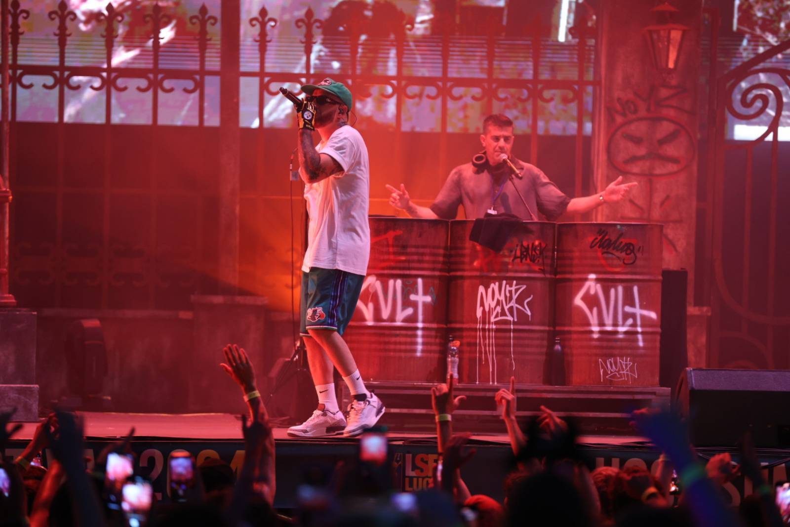 Che sarebbe stata una serata speciale era prevedibile. Il Binomio Salmo e Noyz Narcos lasciava presagire un’alleanza che avrebbe fatto fuoco e fiamme ma il live “Hellraisers”, in onda nella piazza più bella e musicale dell’estate italiana nella notte di giovedì 18 luglio, ha superato ogni più terrificante aspettativa, creando il “panico” promesso alla viglia del concerto. Abbracciati da oltre settemila seguaci in festa, le due leggende del rap italiano, nell’ennesima serata di musica e spettacolo al LSF, hanno ripercorso i propri successi ed hanno presentato, dal vivo, i brani del joint album “CVLT”, realizzato in collaborazione ed uscito lo scorso 3 novembre. L’energia delle due icone del rap italiano si è sprigionata alla massima potenza fin dalle prime note di Anthem e Cringe, seguite dal brano Incubi, con il maxischermo e la scenografia che hanno riportato alla mente l’iconico set del Bates Motel del film Psyco di Alfred Hitchcock. La musica rap parla ed i due rapper hanno cantato ma si sono anche intrattenuti, nei caratteristici modi schietti, coloriti e sinceri con il pubblico di Lucca che non ha mancato, calorosamente, di far sentire la propria presenza, rispondendo ad ogni loro invito. La scaletta del live è proseguita, in un’impeccabile sinergia tra i due artisti, frutto di anni di conoscenza reciproca e collaborazione artistica, con i brani Miracolo, Brujeria, Croce e Cristi e Kilometri, presenti nell’ultimo album “CVLT”