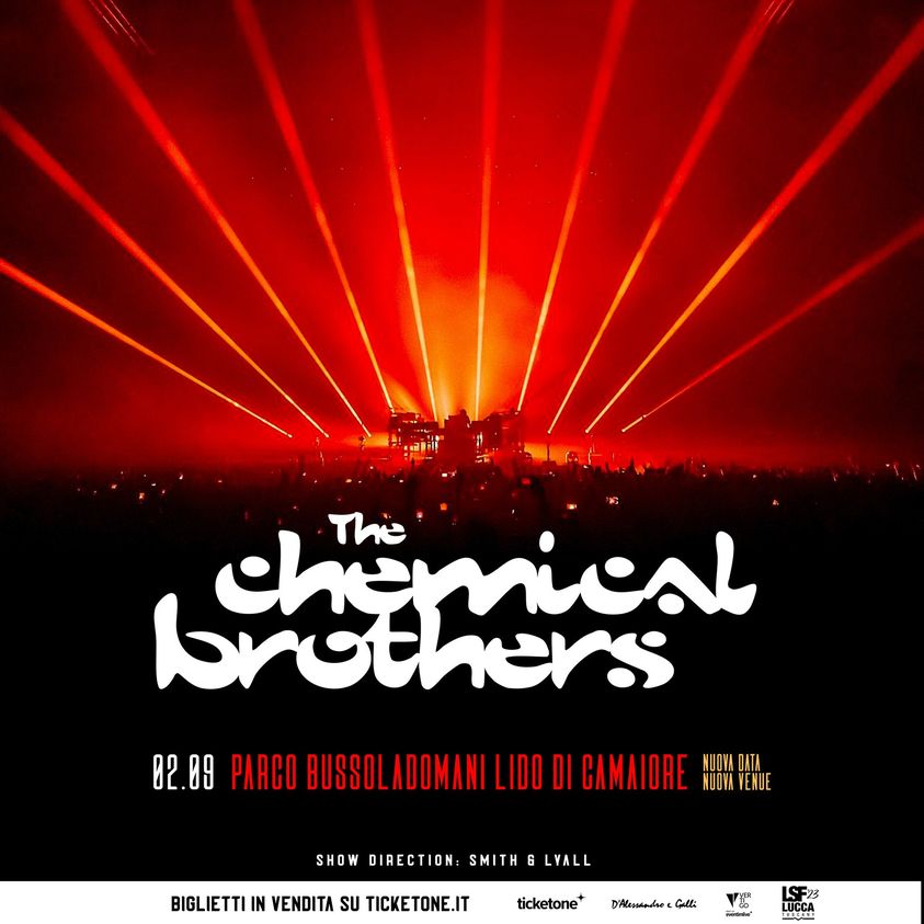 A causa di un problema di salute che ha colpito Tom Rowlands dei Chemical Brothers, il concerto previsto a Lucca Summer Festival il 23 luglio si sposta eccezionalmente al Parco BussolaDomani di Lido di Camaiore sabato 2 settembre.