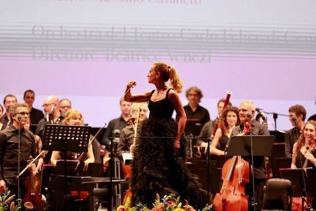 Dalla Tosca il duetto "Mario!Mario!Mario" con la bravissima soprano Carmen Giannattasio e il tenore Marco Berti che più tardi lascerà incantata la platea con una magistrale e stupenda "Nessun dorma" e poi sempre dalla Tosca "Qual occhio al mondo" e "La povera mia cena fu interrotta". Altra esibizione emozionante quella che ha visto in scena il baritono Cavalletti più volte ringraziato in un commosso abbraccio dal direttore Venezi e dopo la pausa e l'Intermezzo dalla Madama Butterfly si è proseguito con un'aria del "Tabarro - Ben oltre il mio sogno" eseguita dal duo Giannattasio e Cavalletti, e poi ancora "Suor Angelica" e "O babbino caro" e "Era uguale la voce" eseguita dal baritono Massimo Cavalletti e tutte tratte dall'opera "Gianni Schicchi" fino ad avviarsi alla chiusura con la splendida musica de "La Tregenda" tratta da "Le Villi" e il superbo "Nessun Dorma" del tenore Marco averti. Applausi e pubblico in piedi per tutti, l'orchestra e il suo direttore e i cantanti, ma a questo punto Beatrice Venezi ha preso il microfono e nel ringraziare commossa per il calore e l'affetto che hanno riscaldato la serata, ha annunciato l'ultimo pezzo: "L'Inno a Roma"scritto da Fausto Salvatori e musicato da Giacomo Puccini all'indomani della fine della grande guerra, sempre boicottato perché eseguito per l'anniversario della nascita della Città Eterna e di cui si appropriò successivamente il partito fascista.