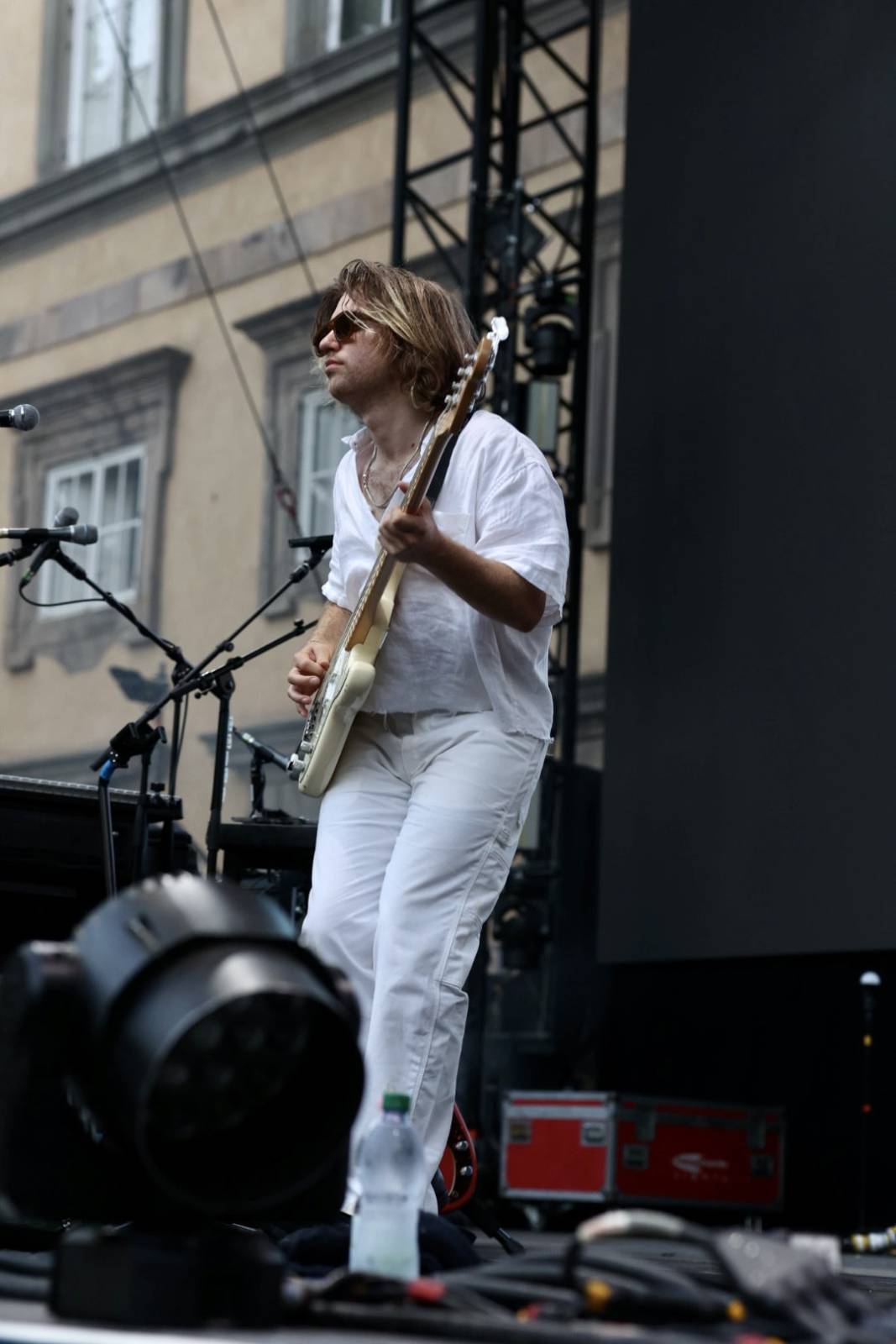 La prima parte del concerto è molto più sognante, le luci - che cambiano colore ad ogni brano - e il fumo, avvolgono la platea, la trasportano in mondi lontani, quasi irreali se non fosse per quei colpi di batteria che ricordano le bombe. I Sigur Rós parlano di rabbia e amore, e della vita, e la loro musica avvolge piazza Napoleone con i suoni, e quei lunghissimi acuti di Jónsi che quasi non sembrano veri.