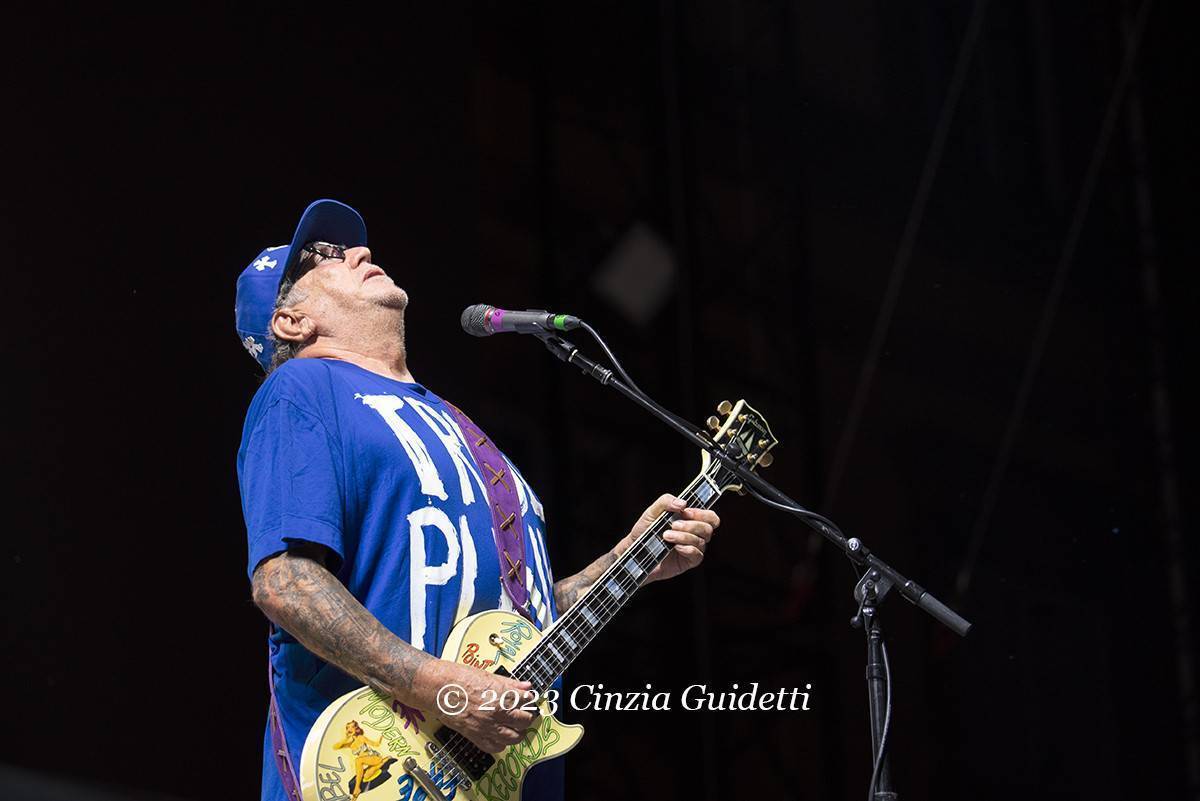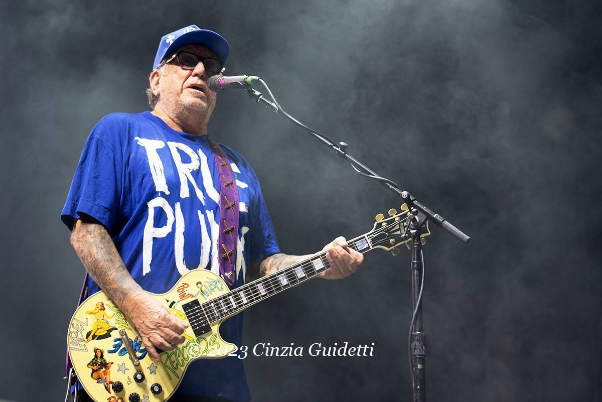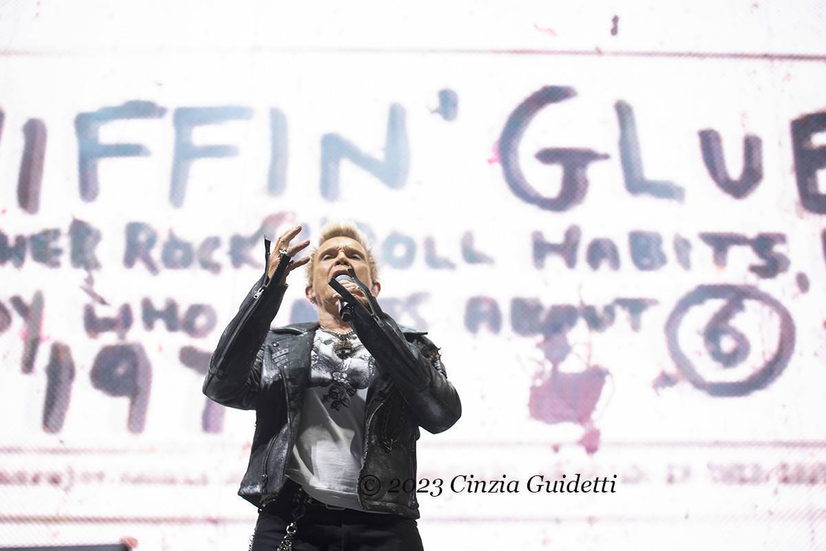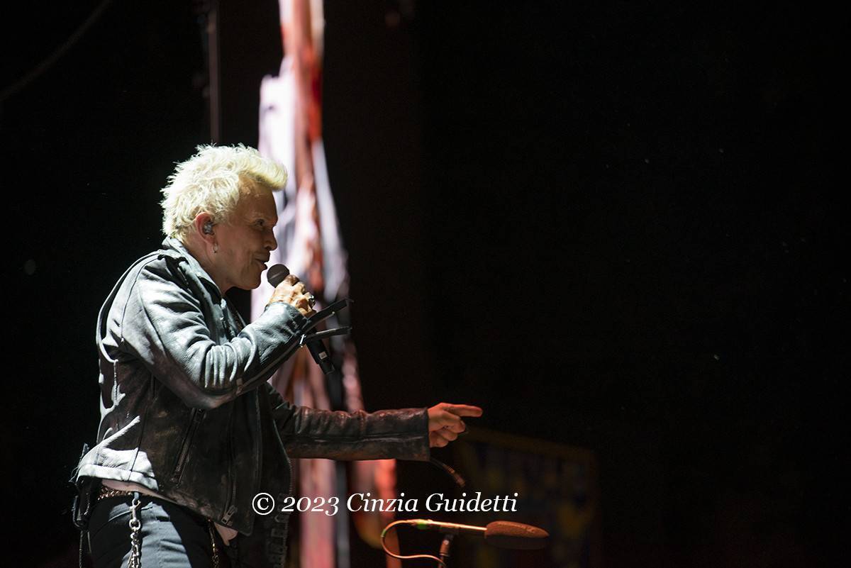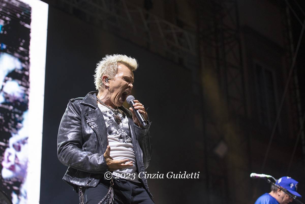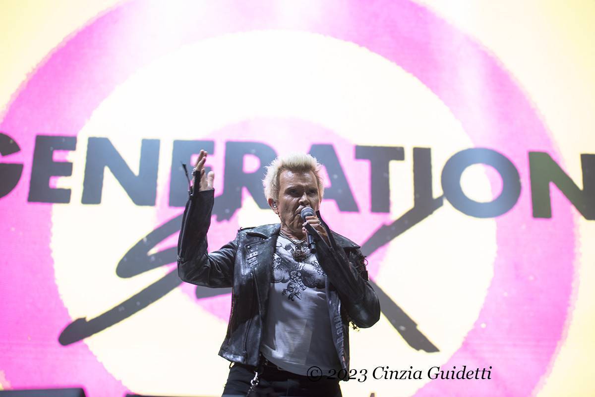 Ad accendere la folla per l'inizio del concerto è stata Pretty Vacant dei Sex Pistols, direttamente dal lato B dello storico album Never Mind the Bollock, Here's the Sex Pistols, l'unico della band inglese registrato in studio. Già dal primo rombo delle casse, Billy Idol, storico cantante dei Sex Pistols sembra scrollarsi di dosso gli oltre 65 anni che, per uno come lui, esistono solo sulla carta d'identità. Cominciano così due ore di performance in cui l'intero gruppo sembra fondersi con le prime file, galvanizzate da un punk rock che scivola nelle vene e batte il ritmo sulle ossa.