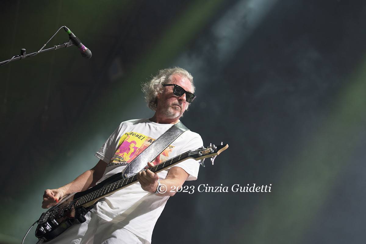 Segnando infatti il reale termine della serata punk-rock durata quasi due ore è piombata dal cielo come un uragano The Great Rock 'n Roll Swindle, title track della colonna sonora dell'omonimo film di Julien Temple. Così, come dopo un ultimo bacio al sapore di pura libertà, la folle folla accalcata sotto gli spalti di Piazza Napoleone si è poco a poco diradata con impressa nelle iridi quattro leggendari esempi viventi di cosa significa essere ancora e sempre oltre. Oltre gli anni che passano. Oltre la musica che cambia. Oltre le istituzioni e le tradizioni. Oltre il punk ed il rock.