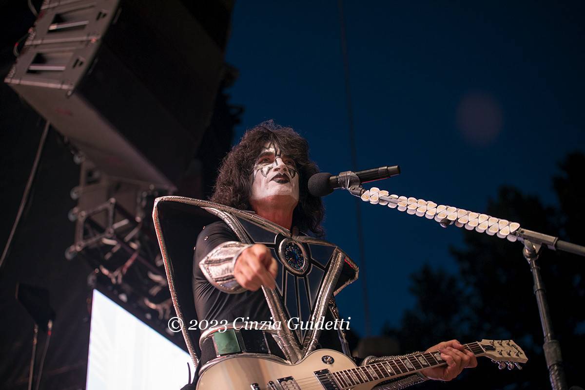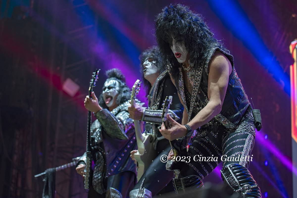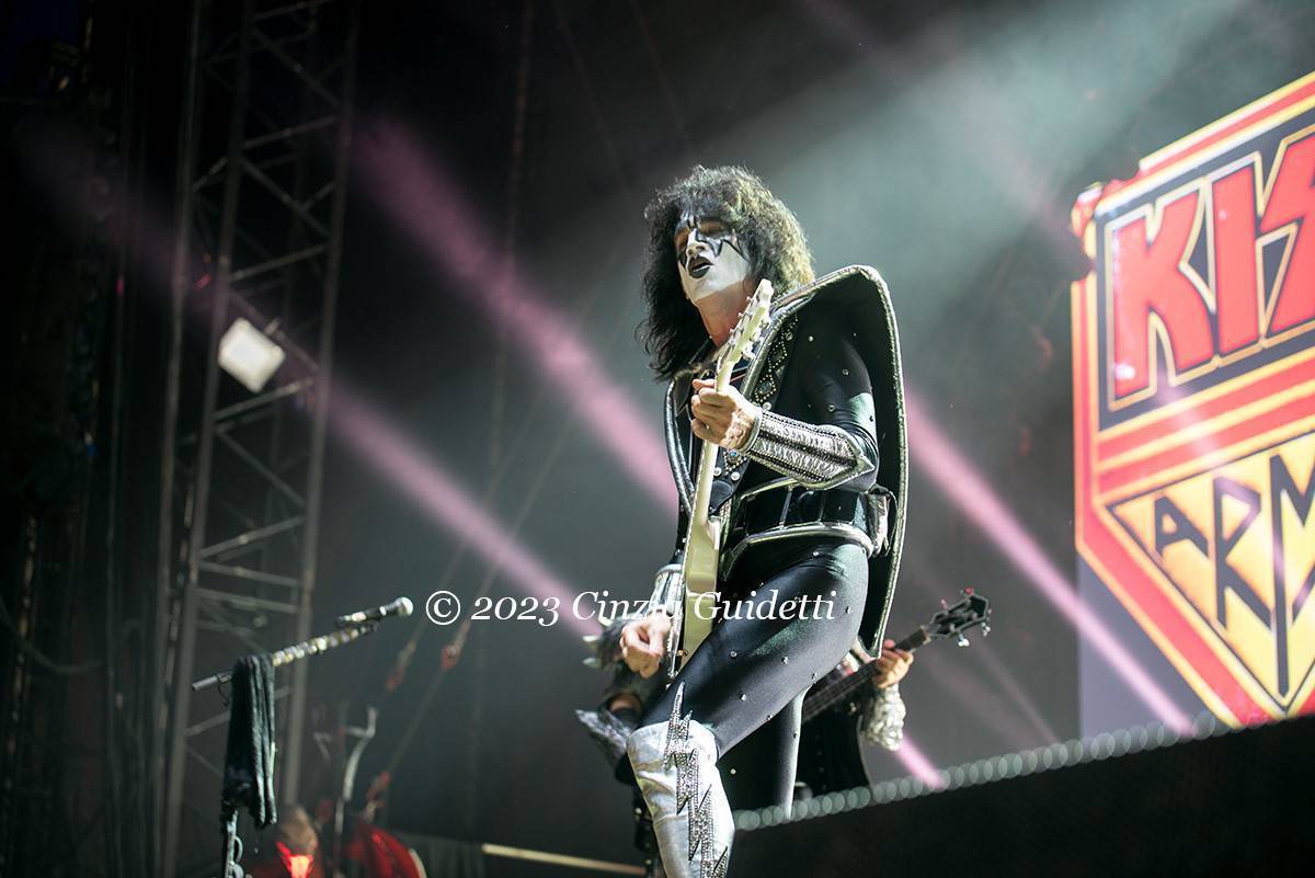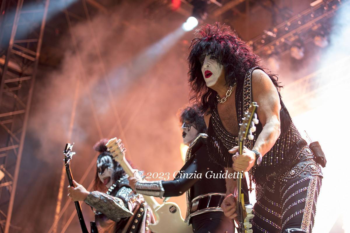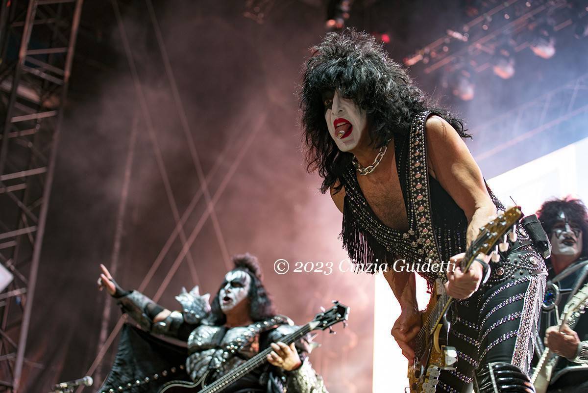 "Buonasera Lucca, come stai my friend?- saluta il pubblico, destreggiandosi con la nostra lingua, Paul Stanley, prima di tornare all'inglese- È la prima volta che veniamo a Lucca, ma nessuno ha più passione, più cuore di tutti voi. Siamo stati a Verona, siamo stati a Roma, a Genova... a Pisa". Il chitarrista dimostra di essersi ben informato, e sortisce evidentemente l'effetto desiderato quando il pubblico si lamenta rumorosamente a quest'ultimo nome. La sfida, insomma, è quella di dimostrare che i fan lucchesi non hanno niente di invidiare a tutti gli altri, anzi; e non è difficile dire che la sfida sia stata vinta.