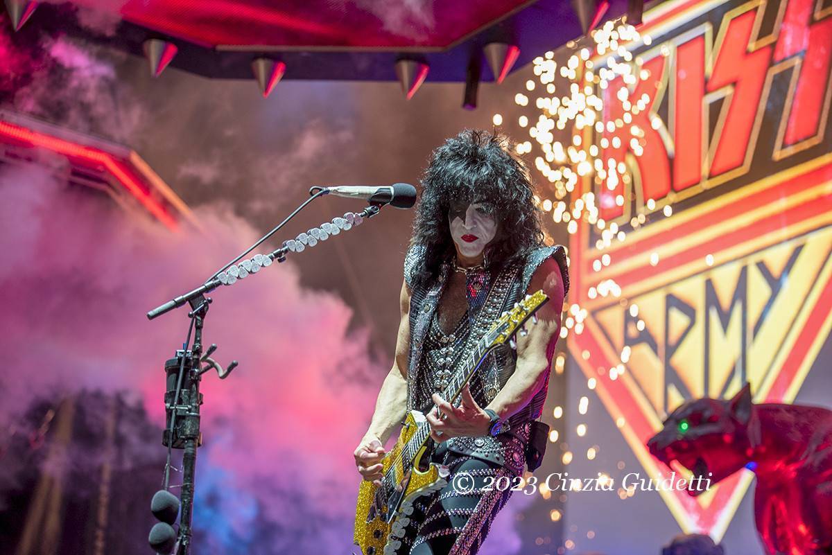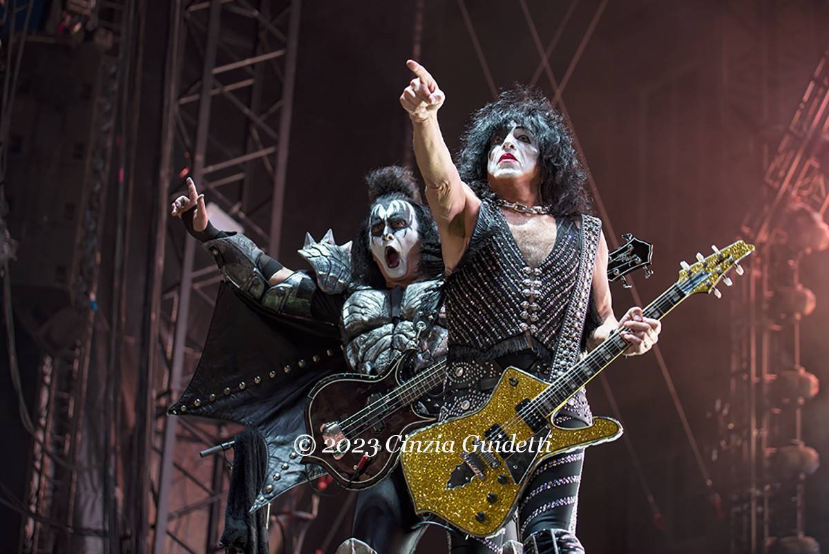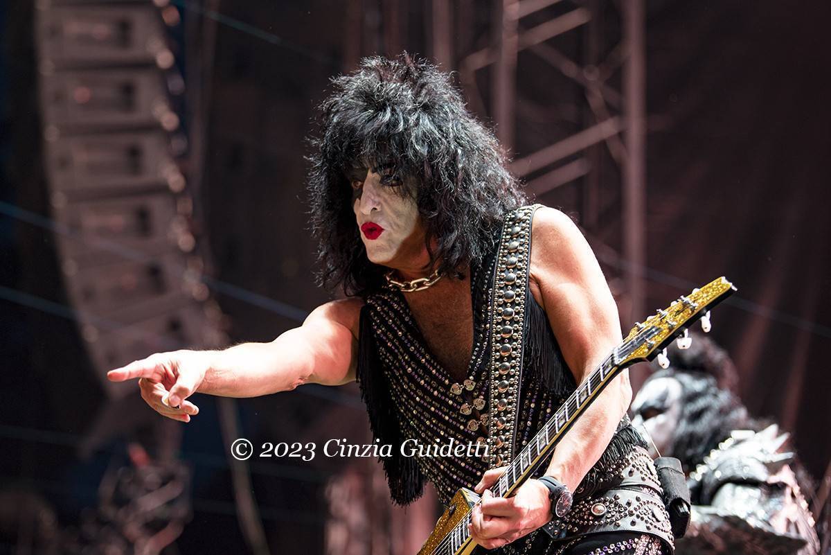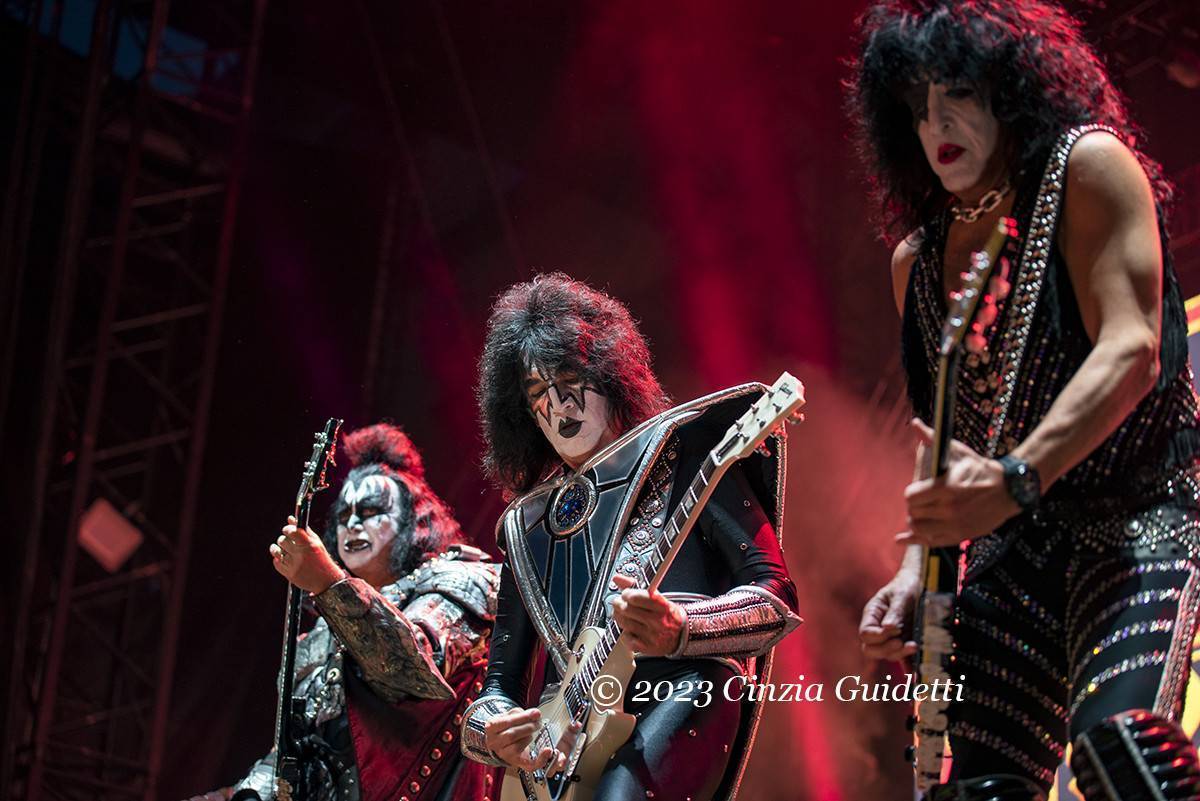 "Buonasera Lucca, come stai my friend?- saluta il pubblico, destreggiandosi con la nostra lingua, Paul Stanley, prima di tornare all'inglese- È la prima volta che veniamo a Lucca, ma nessuno ha più passione, più cuore di tutti voi. Siamo stati a Verona, siamo stati a Roma, a Genova... a Pisa". Il chitarrista dimostra di essersi ben informato, e sortisce evidentemente l'effetto desiderato quando il pubblico si lamenta rumorosamente a quest'ultimo nome. La sfida, insomma, è quella di dimostrare che i fan lucchesi non hanno niente di invidiare a tutti gli altri, anzi; e non è difficile dire che la sfida sia stata vinta.
