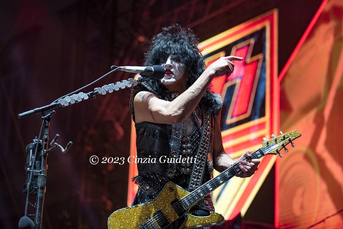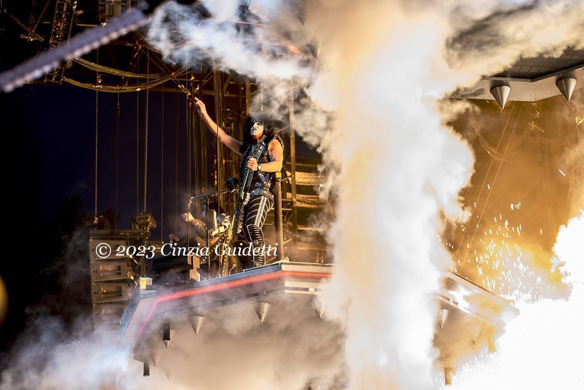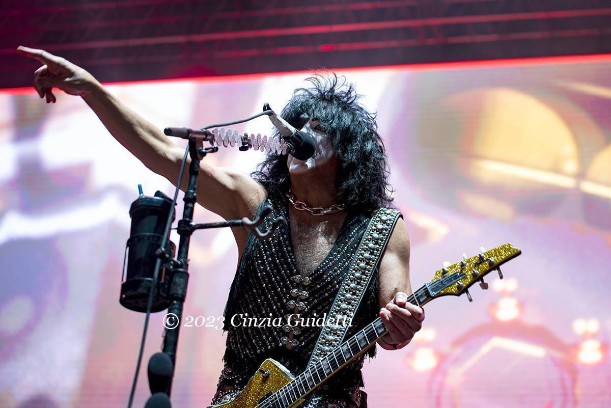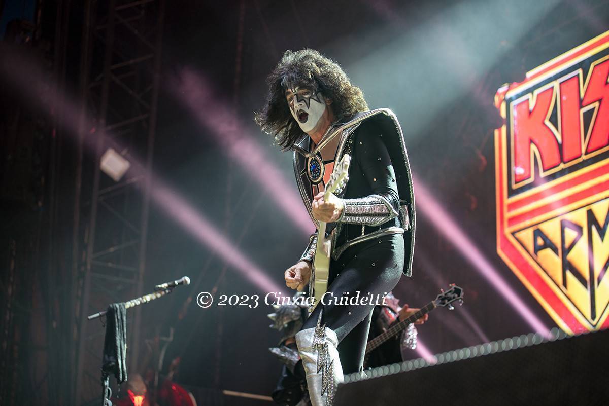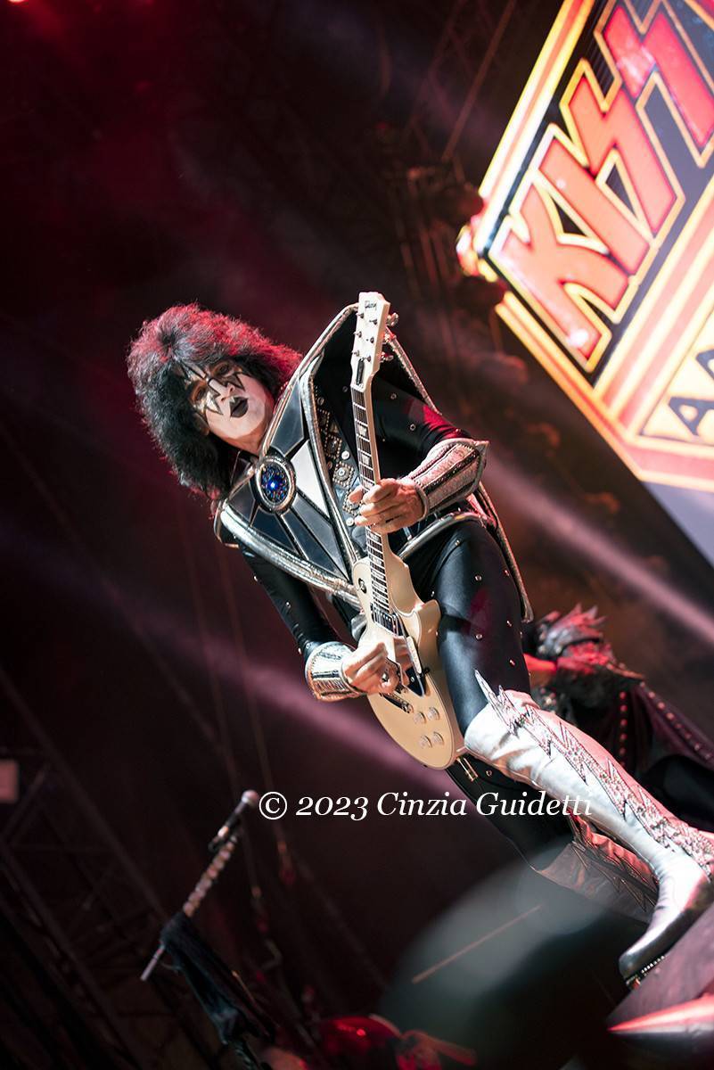 "Buonasera Lucca, come stai my friend?- saluta il pubblico, destreggiandosi con la nostra lingua, Paul Stanley, prima di tornare all'inglese- È la prima volta che veniamo a Lucca, ma nessuno ha più passione, più cuore di tutti voi. Siamo stati a Verona, siamo stati a Roma, a Genova... a Pisa". Il chitarrista dimostra di essersi ben informato, e sortisce evidentemente l'effetto desiderato quando il pubblico si lamenta rumorosamente a quest'ultimo nome. La sfida, insomma, è quella di dimostrare che i fan lucchesi non hanno niente di invidiare a tutti gli altri, anzi; e non è difficile dire che la sfida sia stata vinta.