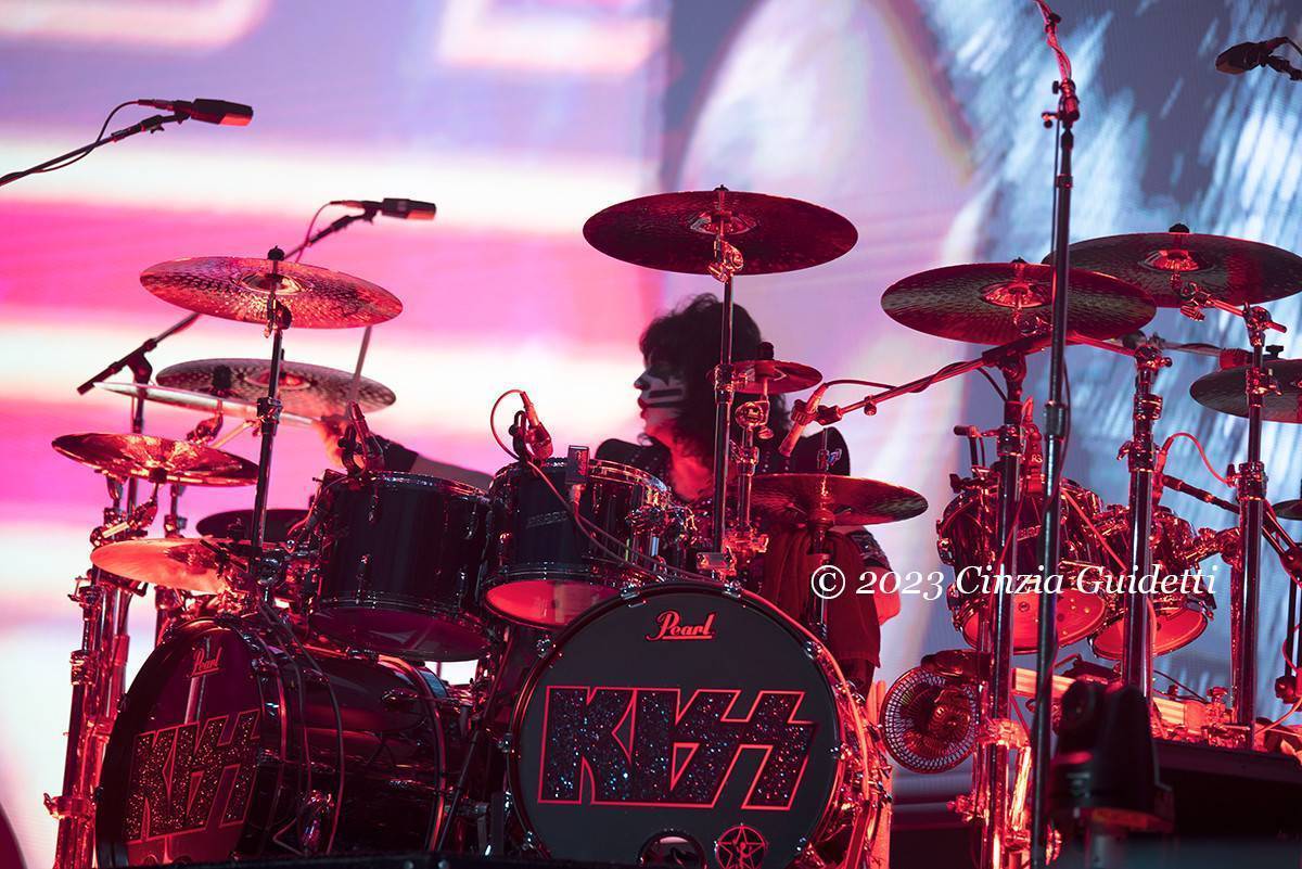 "Questa sera sarà fantastica. Abbiamo roba vecchia, roba più vecchia, roba vecchissima, classici" prosegue Stanley; ma d'altronde, anche il tasto dolente deve essere toccato: i Kiss si trovano qui a Lucca grazie all'End of the road world tour, con il quale la band, dopo una straordinaria carriera di cinquant'anni, dirà addio alle scene. "Potrebbe essere l'unica volta che vi vediamo, ma vi prometto che voi ci vedrete ancora- rassicura solennemente il pubblico- Quando chiuderete gli occhi, saremo sempre con voi. I Kiss vivranno per sempre, dentro ciascuno di voi".