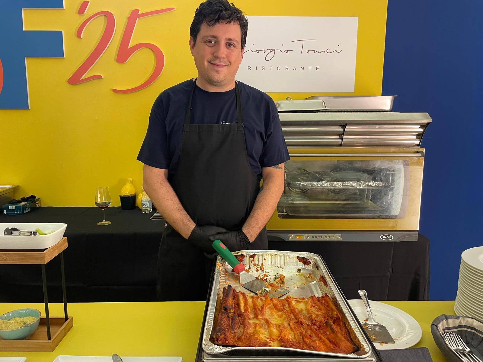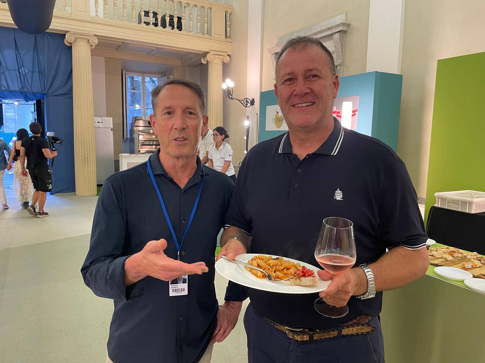 Mimmo D'Alessandro è un genio quando si tratta di organizzare l'organizzabile. All'interno del Palazzo che ospita la Provincia sono state disposti gli stand grazie a cui gli ospiti possono rifocillarsi come d'abitudine per ogni concerto. Dal forno con tanto di pizza davvero buona che esce in quantità e qualità niente male, alla ormai immancabile presenza di Galliano con i suoi budini e i suoi gelati. Dal vino all'acqua minerale Silvia del gruppo Puccetti sponsor della manifestazione, alla frutta fresca, alla pasta cucinata espressa alle teglie di lasagne espresse con ricotta e spinaci. E poi ancora tutti i tipi di pane e i drink.