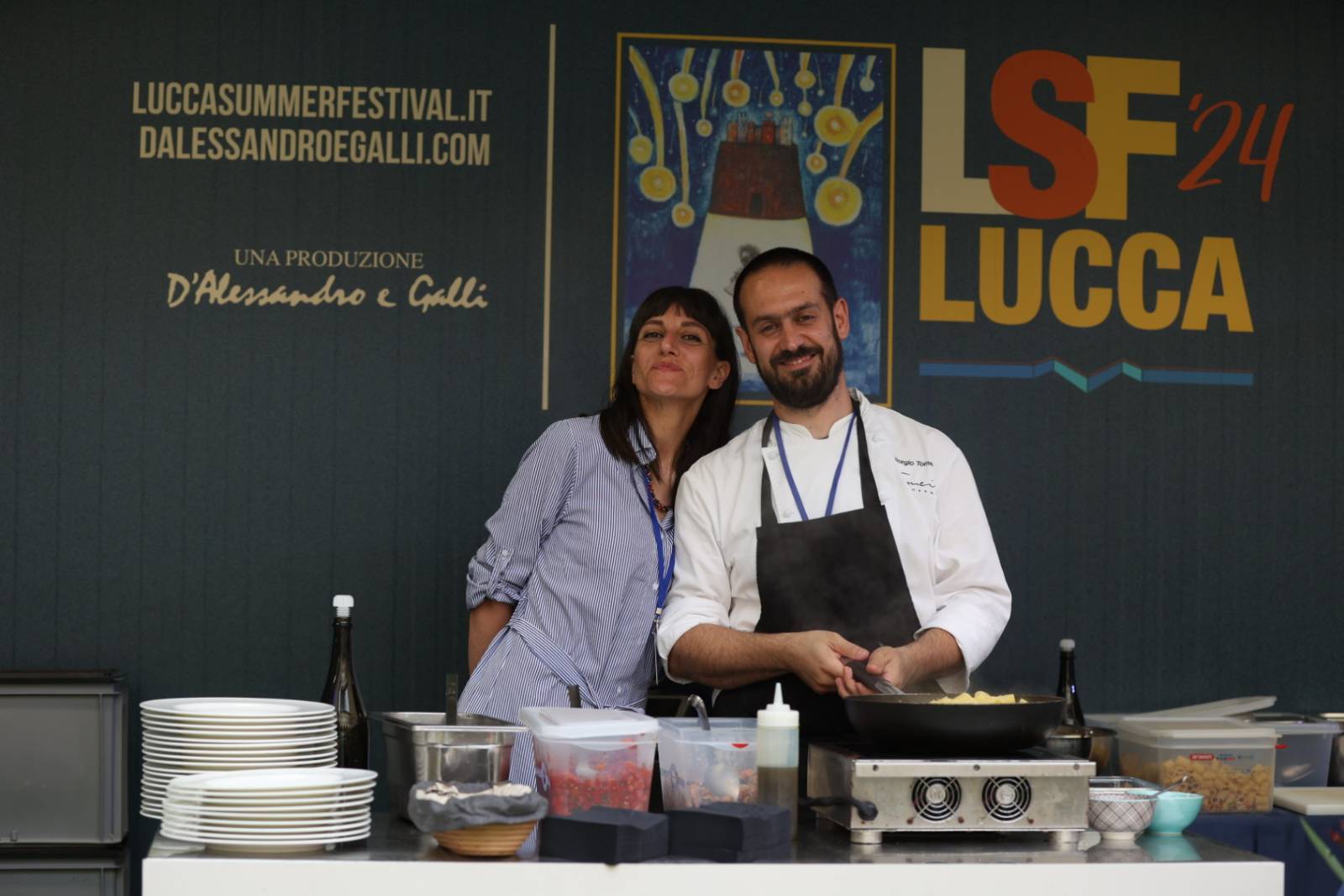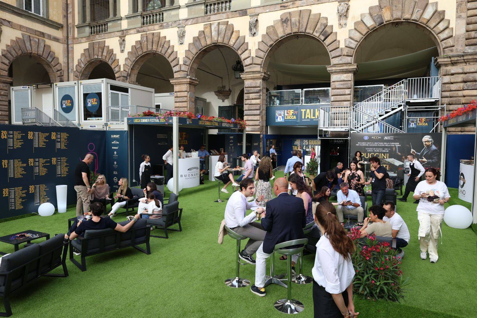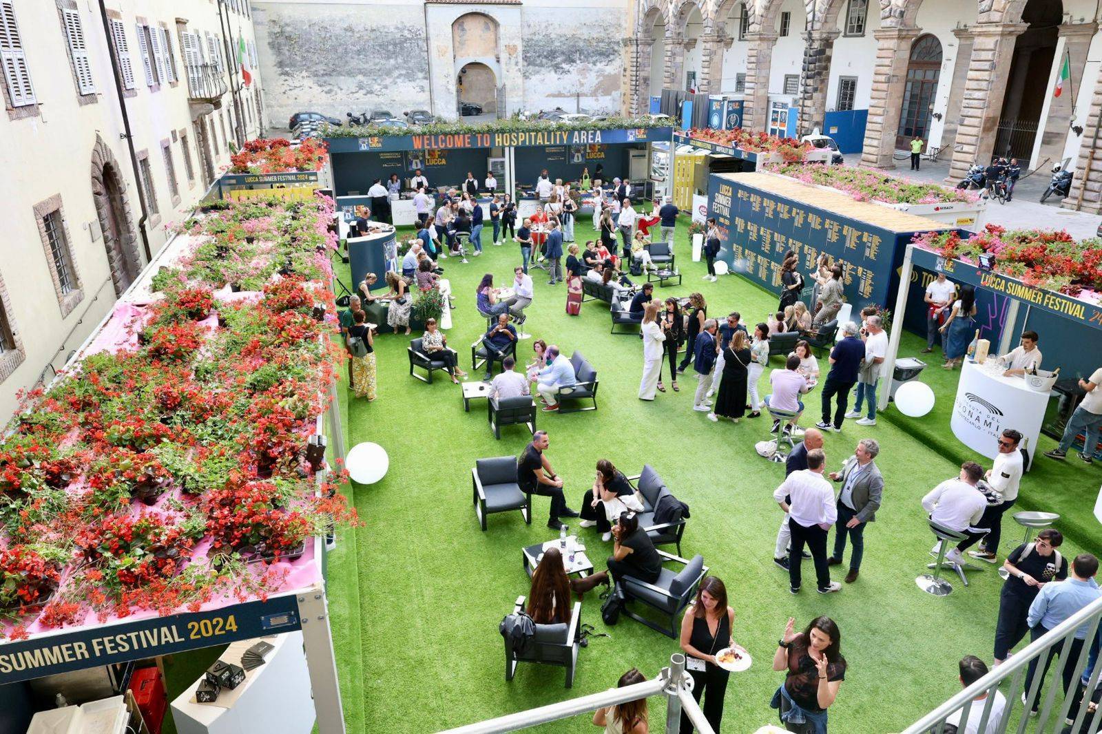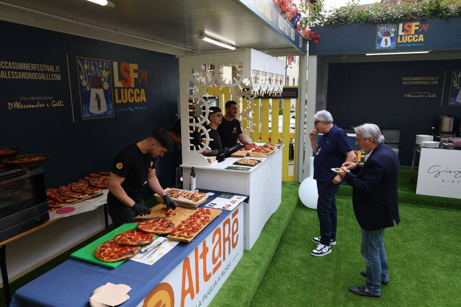 Che sia stata una idea geniale non ci voleva certo la laurea per comprenderlo. Come, del resto, numerose delle invenzioni del promoter del Lucca Summer Festival. Piazzare all'interno di Cortile degli Svizzeri, in una location centralissima e a due passi dal palco dove si esibiscono gli artisti, un villaggio riservato alla ospitalità delle persone che hanno la ventura di capitarci, è, ormai, da anni, un must che fa parte della rassegna musicale stessa. Poco dopo le 19 si accede tramite braccialetto, di colore diverso ogni volta, all'area Hospitality del LSF e si possono degustare dei piatti e degli alimenti assolutamente di alto livello. Ogni serata cambia qualcosa e, infatti, in occasione del concerto di Ed Sheeran, c'è uno stand per le specialità pugliesi della focaccia con pomodori e le friselle anch'esse con i pomodorini gustosissimi.