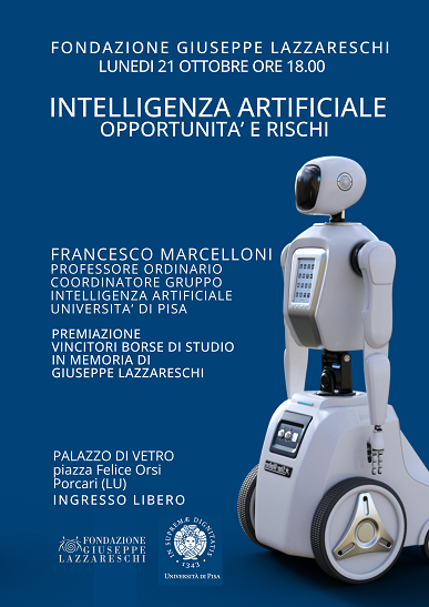 NEMICA o amica? L’intelligenza artificiale ha ormai pervaso le nostre vite e sempre di più avrà un impatto determinante sul nostro futuro. Potrà sostituire l’uomo o possiamo farcela preziosa alleata? Se ne parlerà lunedì 21 ottobre alle ore 18 nel Palazzo di Vetro della Fondazione Giuseppe Lazzareschi di Porcari con un ospite di eccezione, Francesco Marcelloni, uno dei massimi esperti in materia, professore Data Mining and Machine Learning del dipartimento di ingegneria dell’informazione dell’Università di Pisa, coordinatore del gruppo sull’intelligenza artificiale. L’incontro, che è ad ingresso libero, vedrà anche la premiazione dei giovani laureati che hanno vinto il bando borse di studio in memoria di Giuseppe Lazzareschi per aver sviluppato meritevoli percorsi formativi su tematiche legate alla produzione della carta, della sostenibilità e, appunto, all’intelligenza artificiale. Si tratta di: Giulia Lena, Gabriele Lorenzi, Mirco Lunardi e Veronica Pistolesi, ai quali vanno i sinceri complimenti della Commissione di selezione (composta da Silvio Bianchi, Marco Frosolini, Francesco Marcelloni e Tommaso Valente) e della Fondazione Giuseppe Lazzareschi.