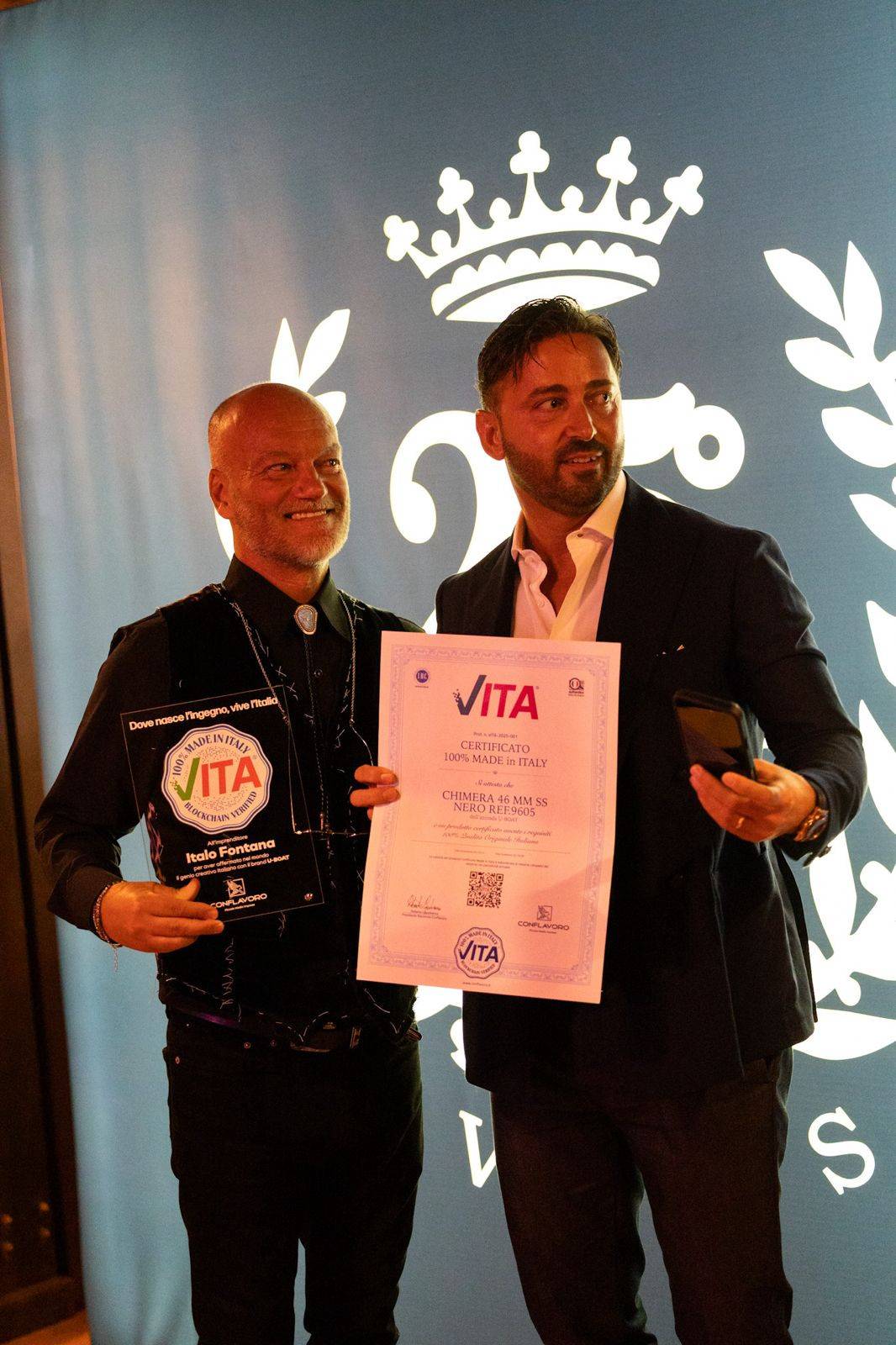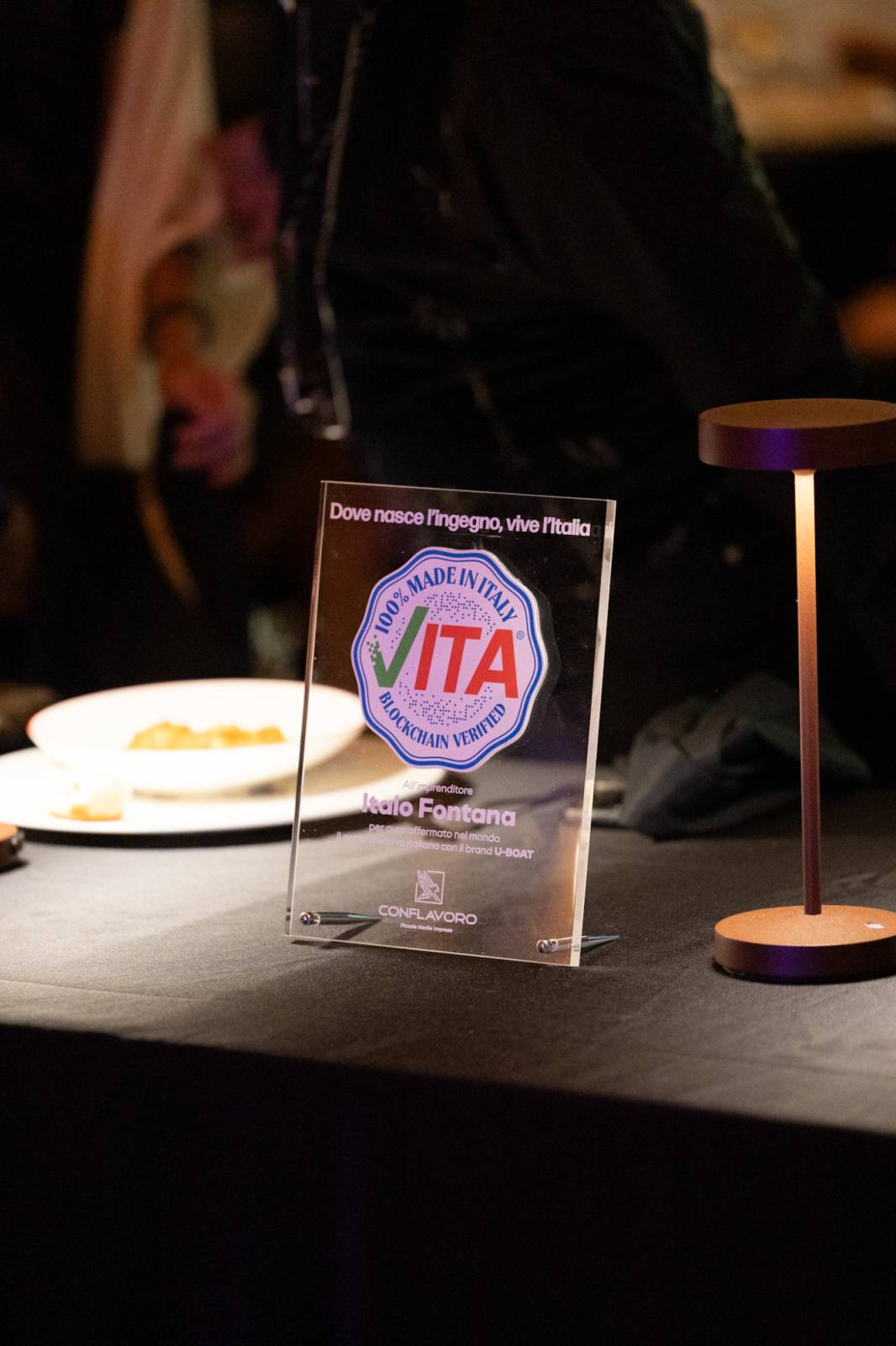Durante la serata il Dott Capobianco, presidente di Conflavoro, ha conferito a Fontana con orgoglio la Certificazione ✓ITA per il Made in Italy.