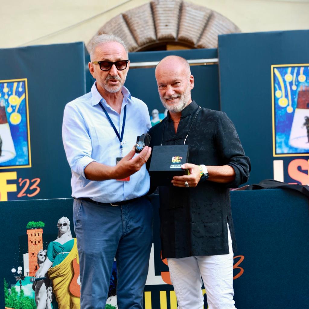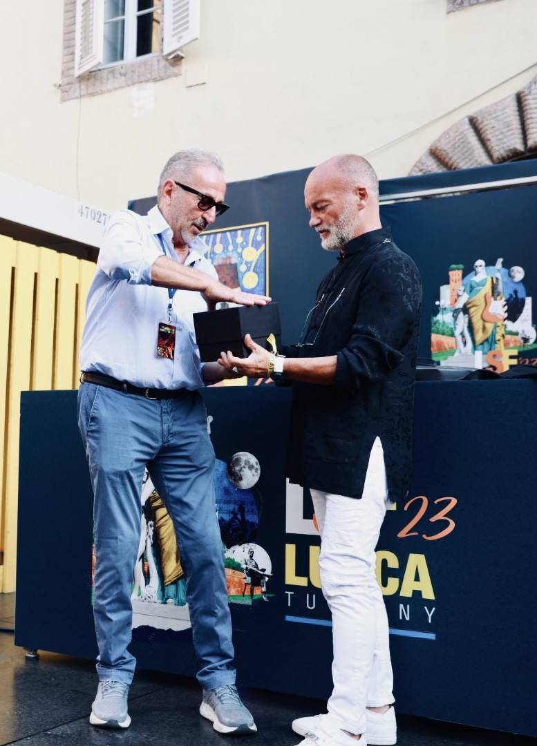 Non me lo aspettavo, ma devo ammettere che sono rimasto molto contento per questo regalo. Diciamo pure che ne avevo bisogno e vedere che un imprenditore lucchese, una eccellenza nel suo campo, ha voluto consegnarmi personalmente con emozione e affetto un pensiero per questi 25 anni di Lucca Summer Festival, mi ha riempito di emozione. Grazie davvero a Italo Fontana, il suo orologio è, semplicemente, bellissimo.
