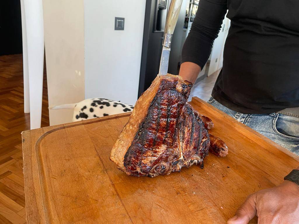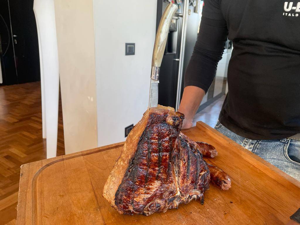 Sopra un tagliere di legno accompagnato a due mani come un dono dei re magi, ecco, finalmente, sua maestà la bistecca. Come la guardi la guardi, è stupenda, profumata, arrapante, stimolante, invitante, eccitante. Incredibile, ma i due amici a quattro zampe nemmeno si infiammano e, anzi, restano a dovuta distanza. Per loro, spiega Italo, solo crocchette ad hoc e niente cibo di strada che altrimenti si sentono male avendo uno stomaco particolarmente delicato e abituato al secco.