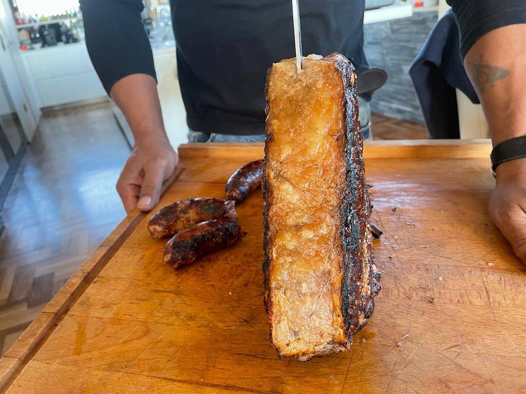 Il contorno è costituito da fagioli cotti al forno, altro piatto ricco nel quale tuffarsi senza timori. Il Barolo fatica a svuotarsi, così il padrone di casa reclama il prossimo 'agnello sacrificale': è l'ora del Barbera, altro vino piemontese, un Favà Nizza docg 2021 della tenuta Garetto, direttamente da Agliano Terme, il paese del Barbera. Le salsicce sono straordinarie e, inutile dirlo, le addentiamo ripetutamente senza vergogna alcuna, ma non siamo i soli.