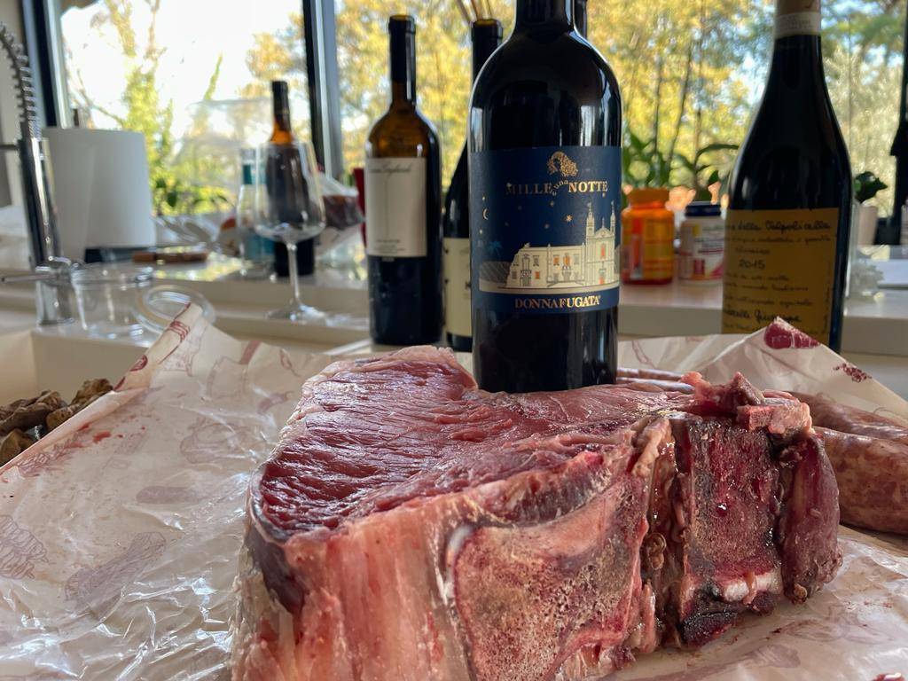 La bistecca è sul fuoco della brace sottostante, qualcuno la sta girando e rigirando insieme alle salsicce. Nel frattempo atterra docilmente e dolcemente sulla tovaglia il Mille e una notte di Donnafugata 2019, direttamente dalla Sicilia dove i coniugi Giacomo Rallo e sua moglie Gabriella fondarono il marchio nel 1983. In realtà i Rallo coltivano vigneti da ben quattro generazioni. Perché il nome Donnafugata? Trae origine da Il Gattopardo, il romanzo di Giuseppe Tomasi di Lampedusa e rimanda alla regina Maria Carolina che, in fuga da Napoli, trovò rifugio là dove oggi si trovano i vigneti aziendali. Una storia che ha ispirato anche il logo: un volto di donna con i capelli al vento. Vino corposo, intenso, importante. La bottiglia, per svuotarsi, all'incirca impiega lo stesso tempo del Tignanello.