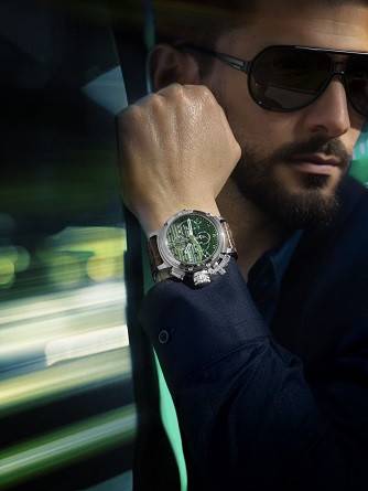 La superficie inferiore, in zaffiro fumé, accentua ulteriormente la profondità e l'impatto visivo delle strisce. Protetti da un vetro ottico in zaffiro con trattamento antiriflesso, queste versioni cronografo presentano lancette in metallo verniciato e spazzolato, anch'esse tagliate al laser.