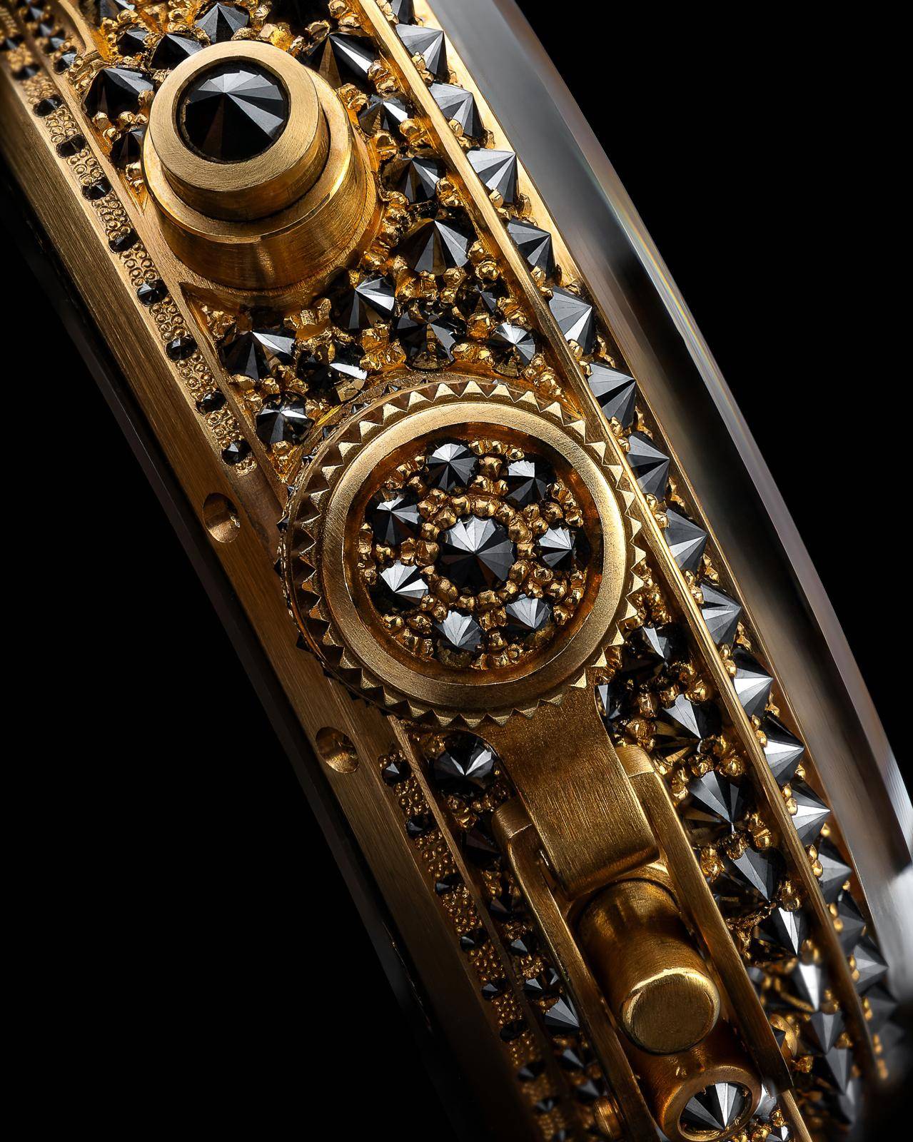 Un’opera irripetibile, nata per un solo polso. Il Classico che si trasforma in scultura: una monumentale cassa in oro giallo accoglie diamanti neri incastonati al contrario, amplificando la rifrazione e trasformando la luce in una presenza oscura, vibrante. Un solo esemplare. Una sola storia. Il CHIMERA UNICO 43 MM: Acciaio per la forza, oro per l’anima. Il quadrante verde si impone con chiarezza assoluta, leggibile, diretto. Meccanica autentica, carattere netto. Un pezzo unico per chi sceglie l’essenza senza compromessi.