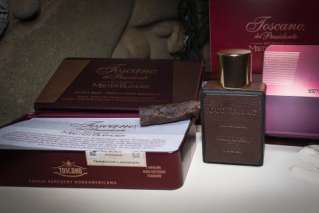 "Sono qui per presentare - spiega Buffini - tre note fragranze attinenti la serata e a base di tabacco toscano delle quali una è anche utilizzata per il sigaro toscano. Testa, cuore e anima, queste le tre componenti del profumo e per me la testa è costituita dal tabacco prevalentemente, il cuore dall'iris fiorentino, l'anima dal legno di oud, un legno indonesiano che dà forma e spessore al profumo".