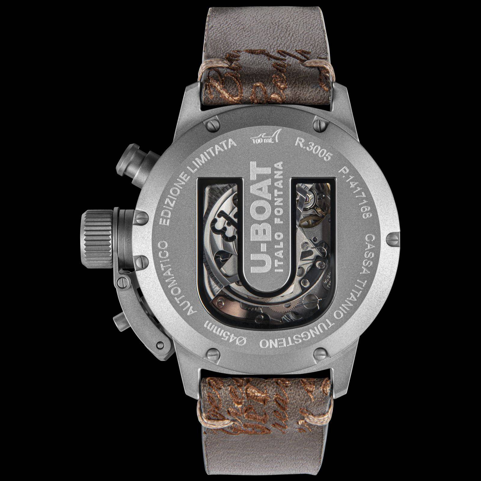 Da sempre riconoscibile per la caratteristica corona di grandi dimensioni posizionata a sinistra, U-BOAT sorprende nuovamente, come già avvenuto con il modello Sommerso, proponendo una versione alternativa del Classico. Un'interpretazione che rompe le convenzioni dell'orologeria tradizionale, dove la corona è tipicamente a destra, e che risponde alle esigenze dei mancini con un design esclusivo.