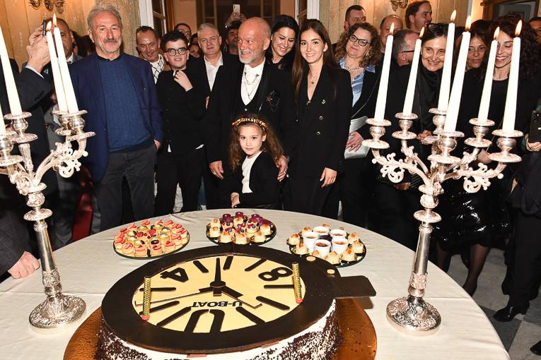 Un buffet a piano terra in attesa che arrivasse il festeggiato e la cena al tavolo vera e propria al piano superiore con un servizio ottimo e una varietà di piatti indubbiamente validi e gustosi. Il top, poi, raggiunto nuovamente al piano terra dove è stata depositata su un grande tavolo la torta raffigurante un quadrante U-Boat e intorno al quale Fontana ha voluto farsi immortalare insieme alle figlie Albaclara e Agnese Sofia.